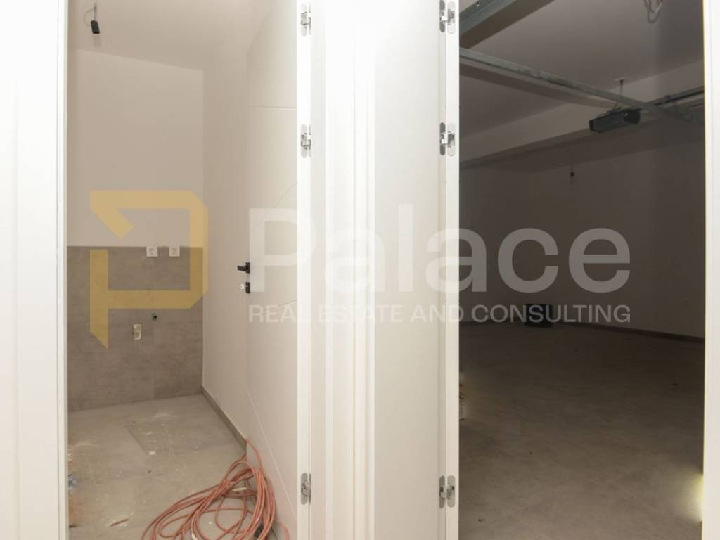 The villa, with a total area of 259 m2, spreads over a basement, ground floor, and first floor. The basement of the villa includes a large garage, storage room, and laundry room. An internal staircase leads to the ground floor, which features a spacious open space living room with kitchen and dining area, a hallway with a toilet, and a bedroom with a bathroom. Large glass walls in all rooms and exterior terraces accessible from all rooms provide an exceptional feeling of warmth and spaciousness with plenty of natural light.