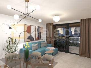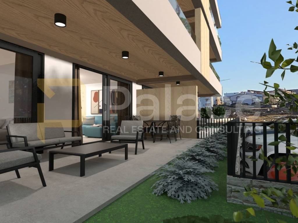 An attractive two-bedroom apartment on the ground floor of a modern residential building with a total of six apartments is for sale, located in a peaceful new settlement, just 350 meters away from the sea and the first beach.