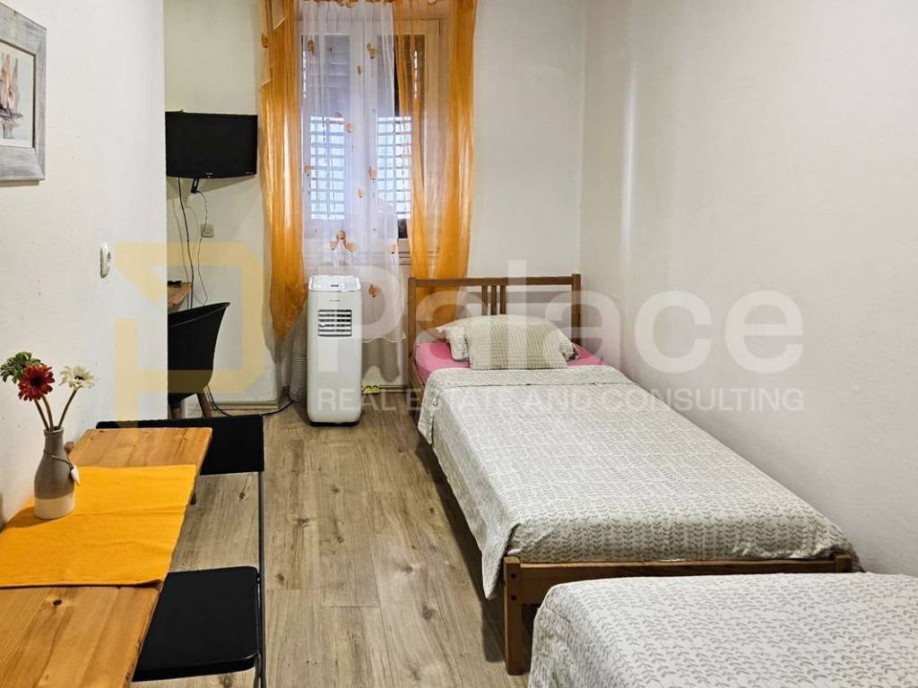 The main residential unit includes an entrance hall, a small storage room, a spacious bedroom, a living room, a kitchen, and a bathroom. The second unit, a mini studio, contains a room with two single beds, and can serve as an excellent source of additional income through renting, or as a space for a new owner who wants to maintain privacy while renting out the main unit.