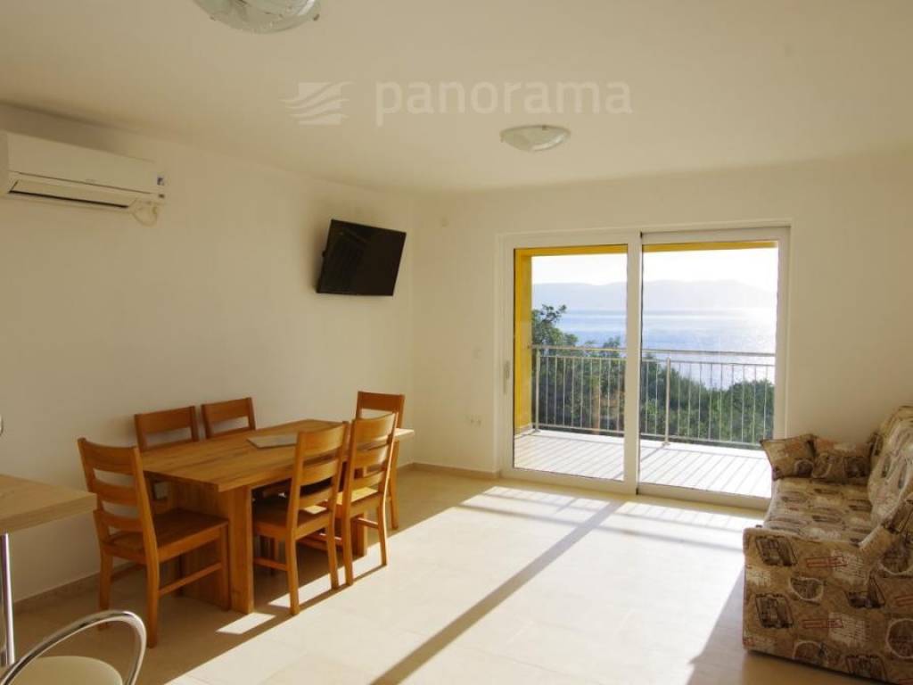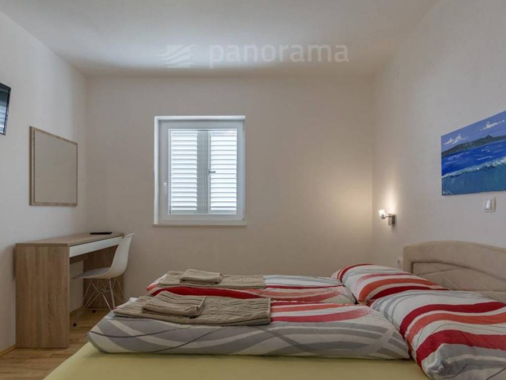 It has a total area of 450 m2, extends over 3 floors and has 6 apartments. The three apartments consist of an equipped kitchen with a dining room and a living room, from which there is access to a spacious balcony with an unforgettable view of the sea and greenery. There are also two bedrooms, two bathrooms and a guest toilet. These larger, two-room apartments can accommodate 4-6 guests. Three smaller, one-room apartments consist of a kitchen with a dining room and a living room with access to a balcony with an enchanting view of the sea, and there are also bedrooms with their own bathrooms and a guest toilet. 2-4 people can stay in these apartments. All apartments are equipped with air conditioning, satellite TV and are functionally decorated. Parking is also provided near the entrance. The total area of the plot on which the house is located is 523 m2 and there is a shared heated swimming pool with a total area of 40 m2. The sea view that all apartments have is beautiful, and the location of this property is excellent - the first beach with crystal clear sea is only a 5-minute walk away!
