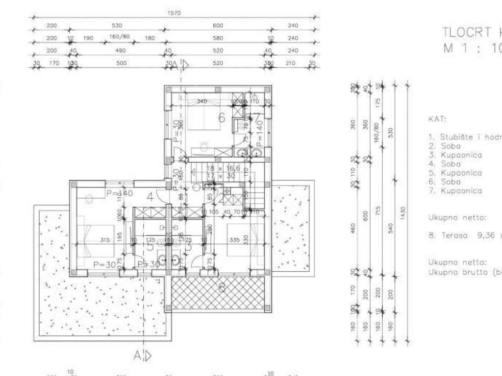 The house has an area of 182 m2 and extends through the ground floor and first floor. On the ground floor there is an open-plan kitchen with dining room and living room, one bedroom with its own bathroom, a guest toilet and a storage room. From the living room and the kitchen there is access to a spacious, covered terrace, which continues to the swimming pool with a sunbathing area. Upstairs there are 3 bedrooms, each with its own bathroom and a large terrace.