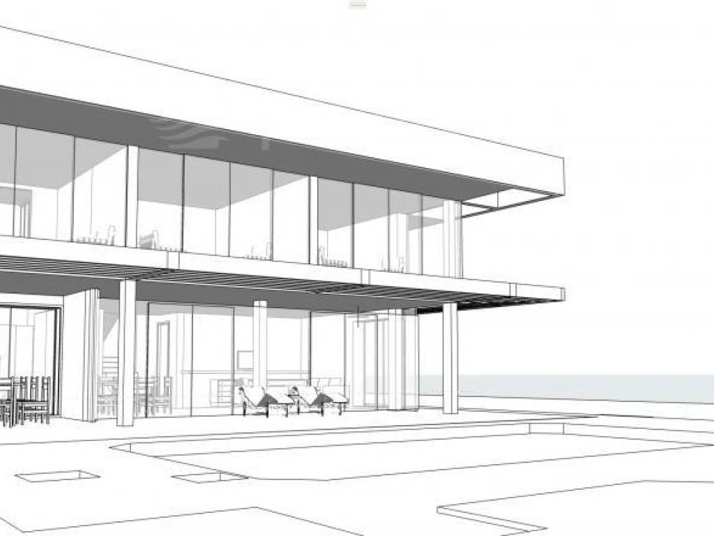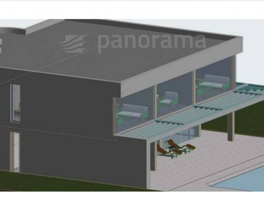 A building permit has been obtained for the construction of a modern villa of 260 m2, an additional building of 50 m2, and an infinity pool of 50 m2. The orientation of the buildings is north-south.