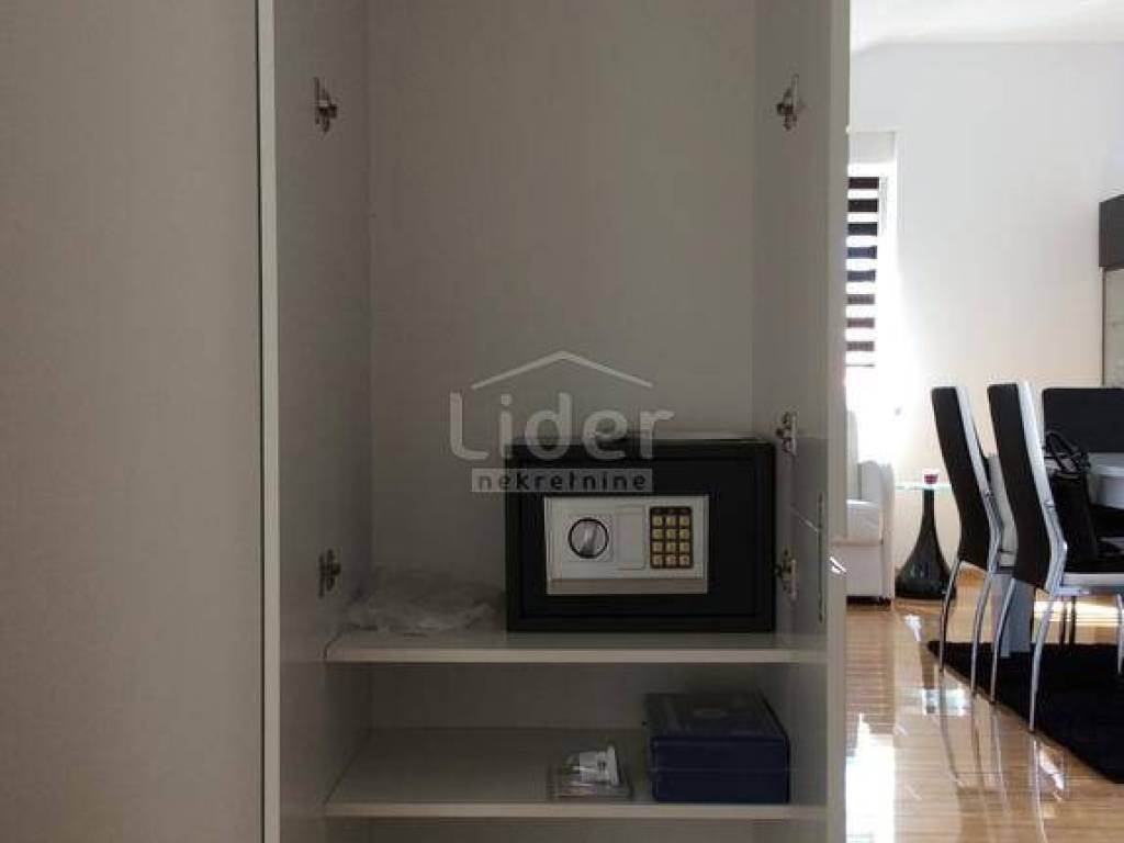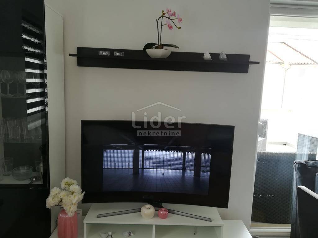 Pag, Novalja, villaggio Gaj, appartamento di lusso situato in una villa urbana di nuova costruzione, superficie 76,43 m2 (in realtà 100 m2), costruito e attrezzato secondo i più alti standard con 2 camere da letto dotate di TV a schermo piatto, soggiorno con TV-om curvo schermo 55", cucina completamente attrezzata, sala da pranzo, bagno, WC aggiuntivo, ripostiglio e altri locali abitativi e ausiliari, parcheggio privato e garage prefabbricato con 3 biciclette elettriche e giardino privato di 63 m2, tutto incluso nel prezzo .