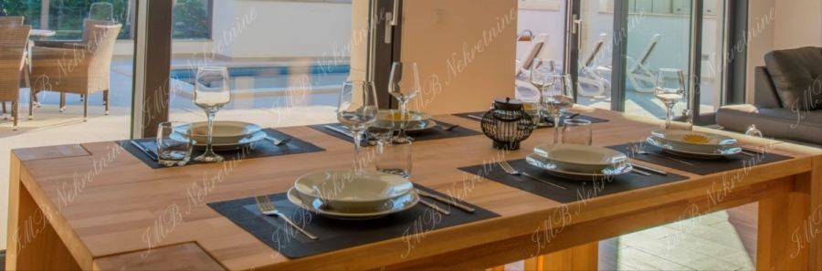 CALL FOR PRICE. Uniwue offer!!!In pure nature, in a beautiful location overlooking the open sea and islands, there are 4 beautiful newly built modern villa with swimming pool, beautiful sea view and exclusive interior!Each villa is positioned on a separate plot, as a separate object independent of the other villas.Possible purchase of a one villa, few villas, or the whole complex - with a significantly lower price!Modern architecture, innovative concept of living, high standard!The area of each villa is on average about 350 m2.Plot area of each villa is on average about 420 m2.Each villa has its own pool, aesthetically nice courtyard, a high level equipped , easy car access.Each villa is a careful design, very beautiful terrace overlooking the sea, with a beautiful glazed sitting rooms, kitchens and dining rooms, with four bedrooms, each with its own bathroom, sunny balconies, saunas ... and with two parking spaces in garages.Excellent investment for a rental, but also for life and break!Central Dalmatia, sea and islands. Close to the island of Hvar, Brac. Distance from Dubrovnik hour and a half drive.More information IMB Real Estate Ltd. Dubrovnik