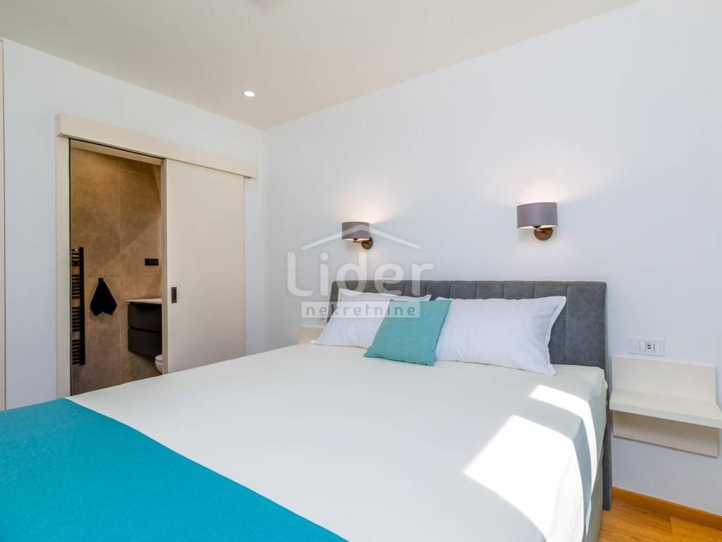 Veglia - Nuova proprietà! Vendiamo una casa vacanze nel piccolo e accogliente villaggio Lakmartin che si trova nella parte sud-est dell'isola di Veglia, tra Punat e Veglia. Questo nuovo immobile ha un'efficienza energetica A+ ed e' dotato di finestre in PVC di alta qualità, aria condizionata, riscaldamento a pavimento, un camino, pavimenti in parquet nelle camere da letto e una porta d'ingresso antifurto. La superficie abitabile della casa vacanze e' di circa 145 metri quadrati distribuiti su due piani. I due piani sono collegati da una scala interna. Il primo piano e' un'area open space con un ampio soggiorno, una cucina con zona pranzo e una porta finestra su una terrazza coperta. Inoltre, nello stesso piano si trova una camera da letto con bagno e una toilette separata. Al secondo piano ci sono due camere da letto ciascuna con bagno proprio e una porta finestra su una terrazza coperta.