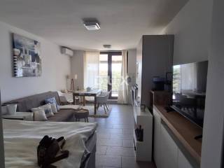 For sale is an apartment located on the 1st floor of a residential building. The apartment consists of an entrance area, a bathroom, a sleeping and living area with a kitchen, a loggia of 8 m2, all together with a total area of 33 m2. The terrace offers a wonderful unobstructed view of the sea.