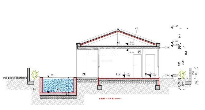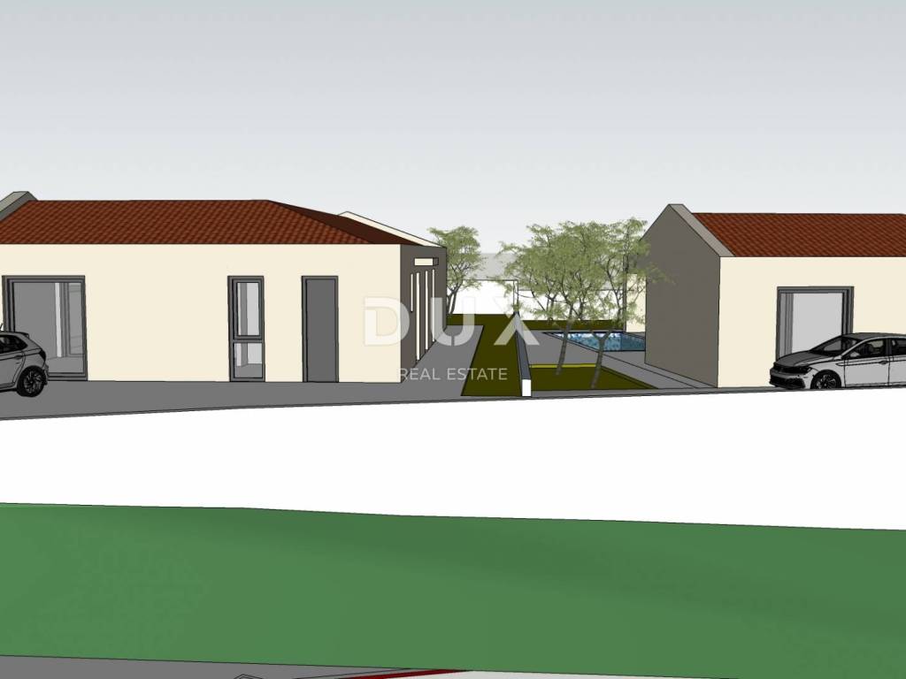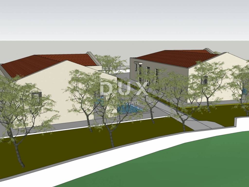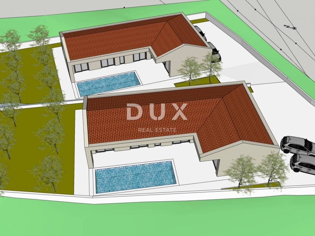 Građevinsko zemljište 1292 m s projektom dviju odvojenih prizemnica svaka s vlastitim bazenom i parkingom + poljoprivredno zemljište 3.700 m