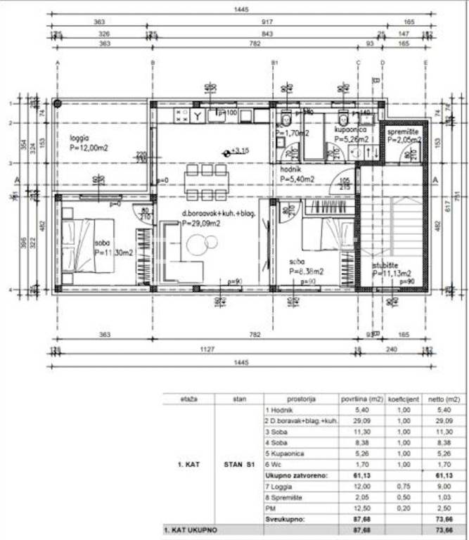 L'appartamento si trova al primo piano di un moderno edificio residenziale di quattro piani, in un tranquillo e curato quartiere residenziale familiare vicino alla Zagrebačka cesta. Con una superficie totale di circa 74 m², l'appartamento è composto da un ingresso, un ampio soggiorno con cucina e sala da pranzo, due camere da letto, un bagno, un WC separato e una loggia coperta di circa 12 m². L'appartamento comprende anche un ripostiglio e un posto auto esterno, ed è possibile acquistare un garage o un posto auto aggiuntivo. L'orientamento dell'appartamento è nord-sud-ovest, il che garantisce molta luce e un soggiorno confortevole durante tutto il giorno. L'edificio è costruito secondo i più alti standard di efficienza energetica e sicurezza antisismica, con particolare attenzione al comfort e a uno stile di vita moderno. La struttura è in cemento armato, con una facciata isolata con lana di roccia spessa 15 cm e un tetto piano con un eccellente isolamento idrotermico. Gli appartamenti sono dotati di riscaldamento a pavimento e pompe di calore, serramenti in PVC a triplo vetro con tapparelle in alluminio, parquet in rovere, ceramiche di prima classe e porte blindate e videocitofono. È collegato a un sistema antincendio automatico e le unità di climatizzazione sono discretamente posizionate sul tetto. Gli interni sono caratterizzati da un design accuratamente selezionato e da attrezzature di alta qualità: porte interne bianche con dettagli neri, bagni moderni con docce walk-in ed eleganti sanitari di produttori rinomati. La posizione è eccellente: a soli 100 metri dalla fermata dell'autobus e a pochi minuti dalla Zagrebačka avenija, City Center One, Z Center e tutte le principali catene di negozi. Nelle immediate vicinanze ci sono una scuola, un asilo, un parco, un ufficio postale, un centro sanitario e tutti i servizi necessari per la vita quotidiana. L'appartamento rappresenta la scelta ideale per la vita familiare o un investimento a lungo termine, con la possibilità di un arredamento flessibile secondo i desideri del futuro proprietario. Il progetto è in fase di costruzione e l'inaugurazione è prevista per la metà del 2026. Per maggiori informazioni, non esitate a contattarci.