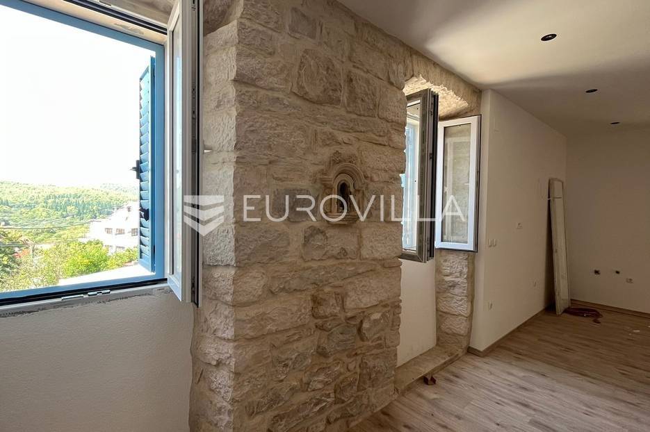 Prodaje se kamena kuća na Žrnovu, otok Korčula.Ova predivna nekretnina u Žrnovu nudi rijedak spoj tradicije i modernog komfora, predstavljajući idealnu priliku za one koji traže udoban dom u idiličnom okruženju.Smještena u blizini grada Korčule, udaljenog samo 3 kilometra, ova kuća u nizu izgrađena od vrničkog kamena iz 1880. godine, potpuno je renovirana 2023. godine.Ova nekretnina je podijeljena u tri zasebna stana, svaki s vlastitim ulazom i brojilom, pružajući vam fleksibilnost i privatnost.U prizemlju se nalaze dva stana, svaki površine 37 m2. Svaki od njih sastoji se od spavaće sobe, kupaonice, prostranog dnevnog boravka i potpuno opremljene kuhinje. Osim toga, svaki stan ima svoju 30 m2 okućnicu koja vam omogućuje uživanje u otvorenom prostoru i mediteranskom stilu života.Stan na katu prostire se na 77 m2 i nudi priliku za proširenje stambenog prostora dodavanjem galerije, što bi ukupno povećalo površinu na 107 m2. Ovaj stan ima dvije prostrane spavaće sobe, kupaonicu, dodatni toalet, kuhinju i prostrani dnevni boravak.Ova kuća je orijentirana sjeverozapadno, što omogućuje obilje prirodne svjetlosti tijekom cijelog dana, stvarajući ugodan i svijetao životni prostor.Sanitarije u kući su već postavljene, a stanovi su prazni, čekajući vaš osobni pečat i uređenje prema vlastitom ukusu. Ova nekretnina nudi savršenu priliku za život u prekrasnom okruženju Žrnova, okruženom vinogradima, maslinicima i brežuljcima, dok istovremeno omogućuje lako i brzo povezivanje s gradom Korčulom i svim njegovim sadržajima. Ne propustite ovu priliku da postanete dio ovog čarobnog mediteranskog kraja i stvorite svoj vlastiti raj u Žrnovu.Ostale informacije na upit.