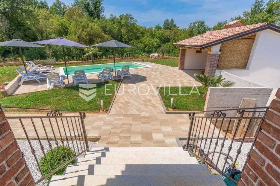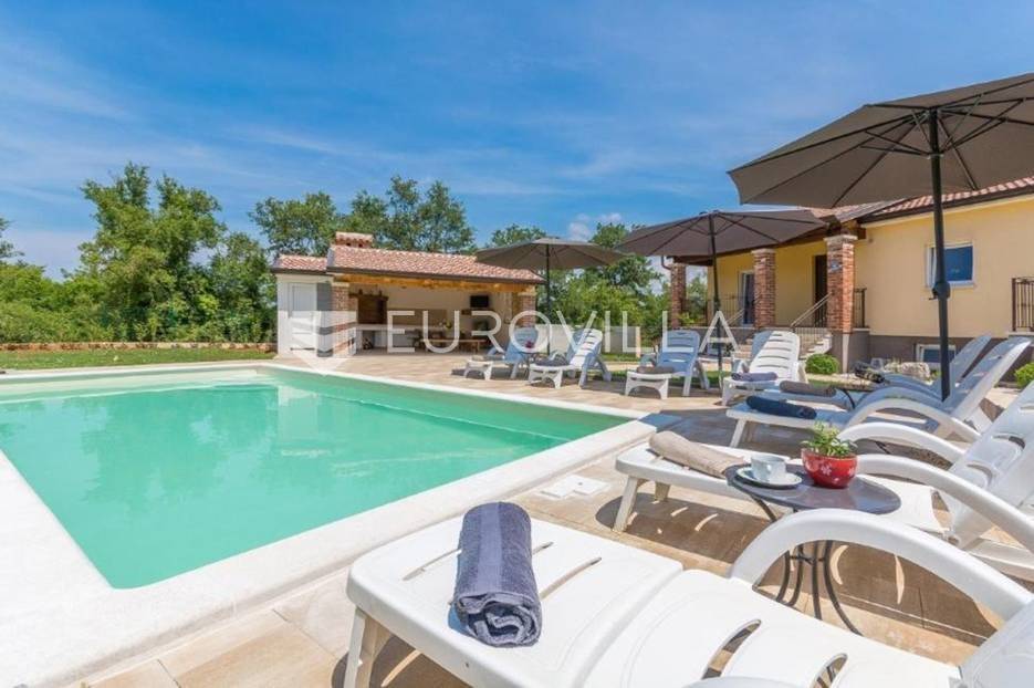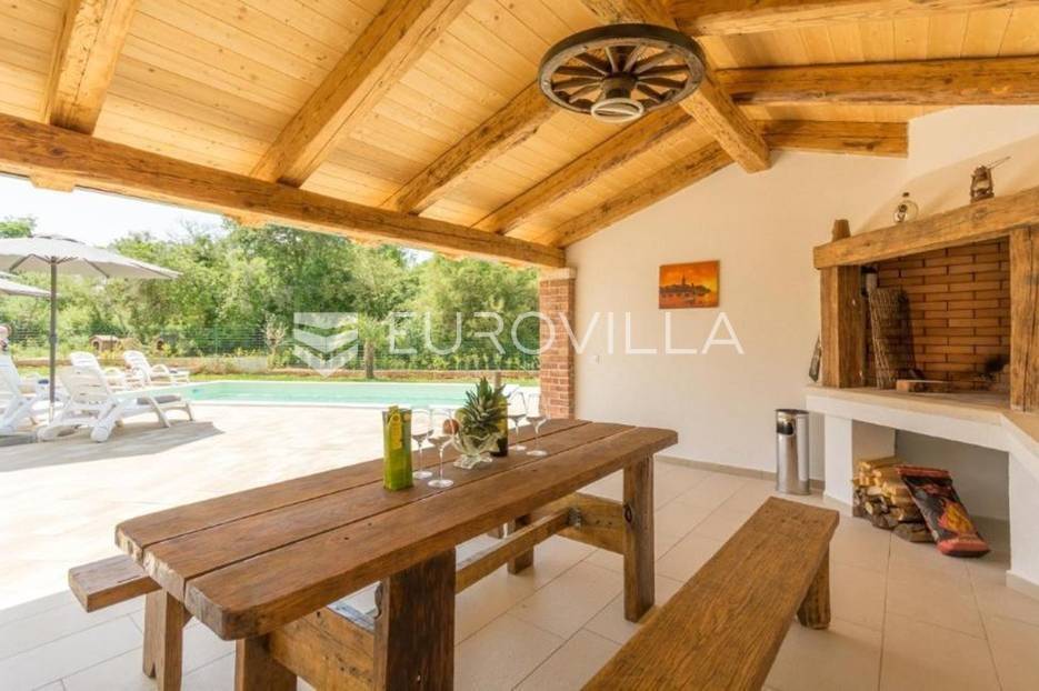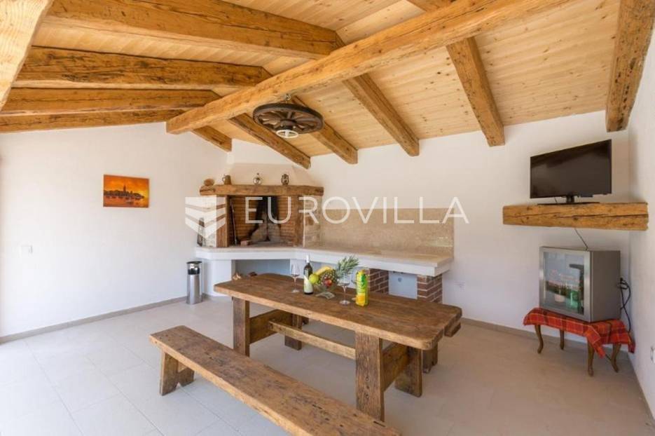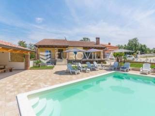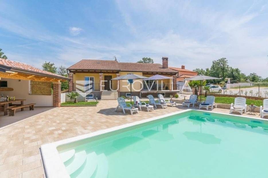 U predgrađu grada Poreča prodaje se prizemnica s bazenom. Površina kuće iznosi 320 m2 te se prostire na dvije etaže. U suterenu se nalazi jedan studio apartman od ukupno 50 m2 te se sastoji od spavaće sobe, kupaonice, dnevnog boravka i kuhinje s terasom. U suterenu se još nalazi teretana sa spravama za vježbanje, kupaonica, tri ostave i konoba za druženje. U prizemlju kuće nalazi se stan od ukupno 150 m2 te se sastoji od prostranog dnevnog boravka, kuhinje i blagovaone smještene u open space konceptu, četiri spavaće sobe i tri kupaonice. U dnevnom boravku se nalazi ugrađeni kamin koji zimi pruža dodatni ugođaj topline. Iz dnevnog boravka i spavaće sobe izlazi se direktno na terasu koja pruža pogled na bazen i prirodu kojom je kuća okružena. U dvorištu se nalazi natkrivena ljetna kuhinja s kaminom koja je idealna za opuštanje s obitelji uz bazen. Uz bazen ima još jedna kupaonica. Kuća ima postavljenu pvc stolariju s komarnicima. Cijela se kuća grije na centralno na drva i klima uređajima. Kuća ima instalirane solarne panele za dobivanje tople vode, a postoji mogućnost i za grijani bazen. Ukupna veličina okućnice je 1650 m2 te se u sklopu prizemnice nalazi građevinski teren na koji se može izgraditi još jedna kuća za odmor. Sav sadržaj za život od škole, ugostiteljskih objekata, banke, pošte, trgovačkih centara, šetnjica uz more nalazi se na samo 8 km udaljenosti od mjesta. Mjesto je mirno i okruženo je vilama za odmor. Ova je nekretnina idealna investicija kao za život obitelji u prirodi tako i za turistički najam kao dodatnu zaradu. Za više informacija slobodno nas kontaktirajte.