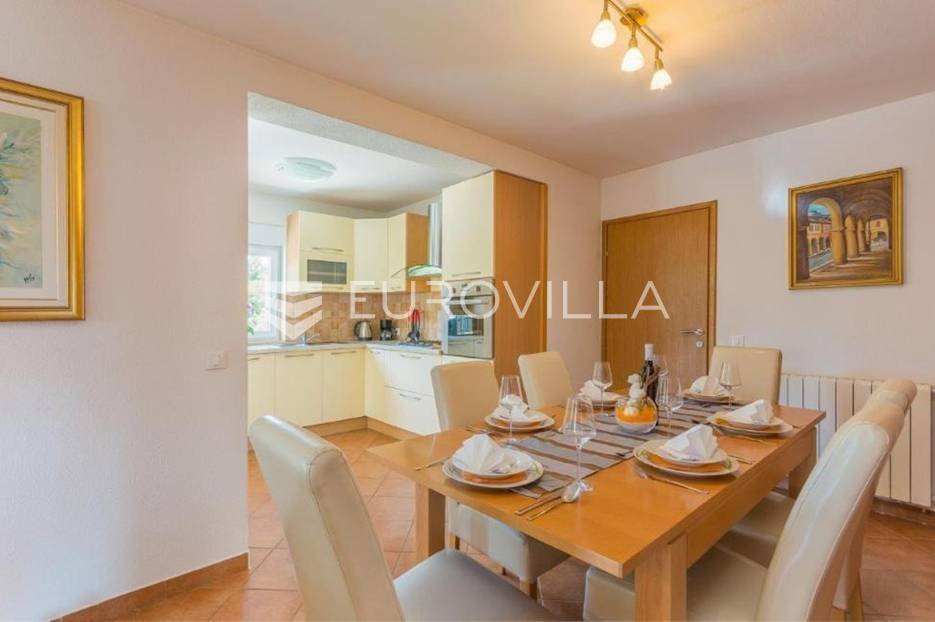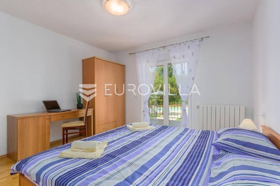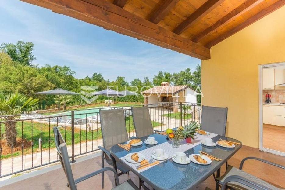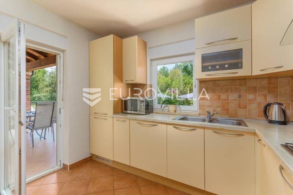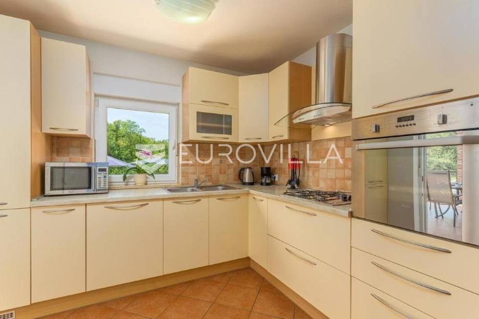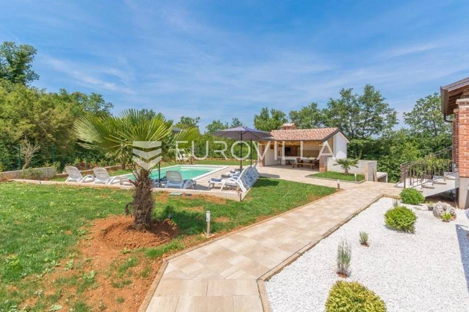 U predgrađu grada Poreča prodaje se prizemnica s bazenom. Površina kuće iznosi 320 m2 te se prostire na dvije etaže. U suterenu se nalazi jedan studio apartman od ukupno 50 m2 te se sastoji od spavaće sobe, kupaonice, dnevnog boravka i kuhinje s terasom. U suterenu se još nalazi teretana sa spravama za vježbanje, kupaonica, tri ostave i konoba za druženje. U prizemlju kuće nalazi se stan od ukupno 150 m2 te se sastoji od prostranog dnevnog boravka, kuhinje i blagovaone smještene u open space konceptu, četiri spavaće sobe i tri kupaonice. U dnevnom boravku se nalazi ugrađeni kamin koji zimi pruža dodatni ugođaj topline. Iz dnevnog boravka i spavaće sobe izlazi se direktno na terasu koja pruža pogled na bazen i prirodu kojom je kuća okružena. U dvorištu se nalazi natkrivena ljetna kuhinja s kaminom koja je idealna za opuštanje s obitelji uz bazen. Uz bazen ima još jedna kupaonica. Kuća ima postavljenu pvc stolariju s komarnicima. Cijela se kuća grije na centralno na drva i klima uređajima. Kuća ima instalirane solarne panele za dobivanje tople vode, a postoji mogućnost i za grijani bazen. Ukupna veličina okućnice je 1650 m2 te se u sklopu prizemnice nalazi građevinski teren na koji se može izgraditi još jedna kuća za odmor. Sav sadržaj za život od škole, ugostiteljskih objekata, banke, pošte, trgovačkih centara, šetnjica uz more nalazi se na samo 8 km udaljenosti od mjesta. Mjesto je mirno i okruženo je vilama za odmor. Ova je nekretnina idealna investicija kao za život obitelji u prirodi tako i za turistički najam kao dodatnu zaradu. Za više informacija slobodno nas kontaktirajte.