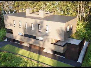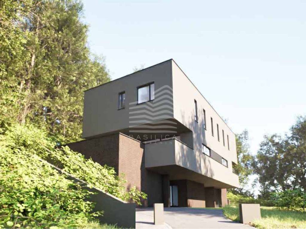 Garaža je spojena toplom vezom sa grijanim dijelom kuće. Na prizemlje dolazi se unutarnjim stubištem gdje se nalaze prostori dnevnih aktivnosti: dnevni boravak, kuhinja, blagovaonica i wc. Ovisno o varijanti koju kupac odabere (u prilogu tehničkog opisa), wc može sadržavati i prostor vešeraja. Vanjske natkrivene i nenatkrivene terase orijentirane su prema zelenom pojasu park-šume Grmošica. Svaka terasa ima svoju vanjsku kuhinju s instalacijama tople i hladne vode i elektroinstalacijama (rasvjeta i utičnice). Na katu predviđamo dvije dječje sobe s jednom kupaonicom, te masterbedroom sa zasebnom kupaonicom i loggiom.