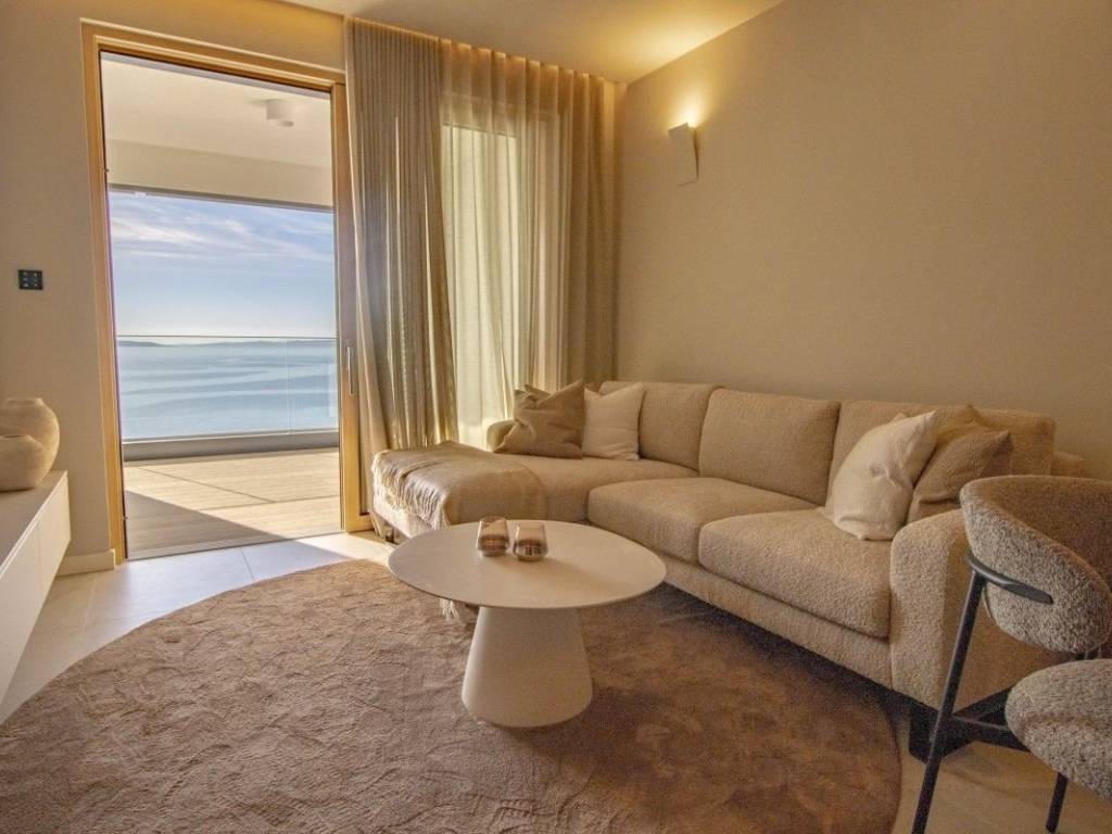 For rent, a luxurious two-bedroom apartment located in a newly built building, located near the Žnjan beach. The property exudes luxury, privacy and peace, which makes it an ideal property for everyday living. The property also includes two garage parking spaces, which contributes to the comfort of the stay.   The property covers approximately 67m2 of living space, and an additional 18m2, which belong to a beautiful loggia, and consists of an entrance hall that leads to one master bedroom with its own bathroom, a smaller bedroom with access to the loggia, one bathroom, and an open space where the kitchen, dining room and living room are located. The living room opens onto a beautiful spacious loggia with a view of the sea and islands.   The building itself has a fitness and spa area, which further contributes to the atmosphere of staying in the property. The luxurious decoration of the property, air conditioning via Daikin heat pumps with hot water preparation and underfloor heating, a smart apartment system that allows you to turn on the lights, blinds, control the intercom and air conditioning, and numerous amenities of the property, make this apartment ideal for living. The location of the property is ideal for everyday life due to the proximity of its amenities for everyday life, whether it is an urban lifestyle or a family one.