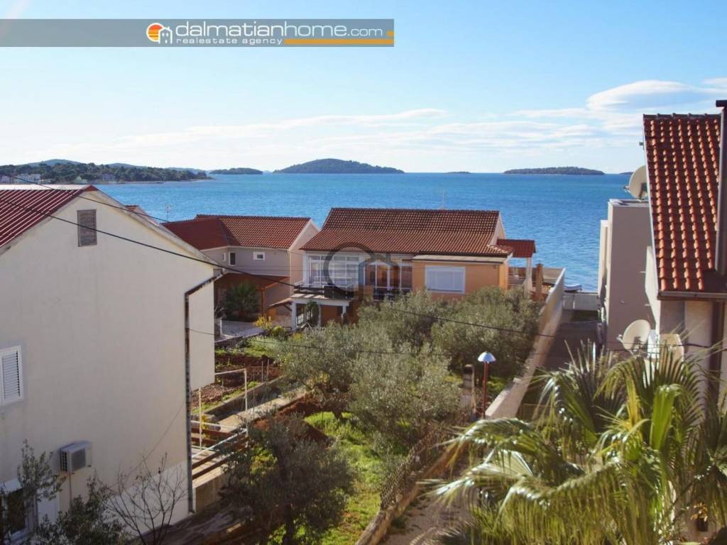 Beautiful house with a large garden and 6 residential units in Brodarica below the highway! This spacious property in the second row to the sea has a total of 450 m2 and consists of a ground floor, first floor, and high attic, connected by an internal staircase. The ground floor was renovated in 2018 and includes a hallway, three bedrooms, a bathroom, a toilet, and a living room connected to the kitchen and dining room. The bright and airy kitchen with a kitchen island opens onto a large terrace and a garden on the south side. Together with the entrance, boiler room, and terrace on the north side, the ground floor covers approximately 160m2. Upstairs there are 4 studio apartments for rent for tourist purposes, categorization 3 stars. Each apartment has an area of approximately 30m2 and in addition to the main room (kitchen, living room, and bedroom in one unit), each contains a bathroom and a balcony on the south side which offers a partial sea view. On the first floor, there is an additional room that serves as a room for socializing with guests. The total floor area is approximately 140m2. The high attic is one residential unit consisting of a hallway, bathroom, pantry, three bedrooms, and kitchen with dining area, spacious terrace of 20m2 overlooking the sea, and a balcony facing east. The total area of this floor is approximately 115 m2. This unit is also for tourist rent, and like the studio apartments, it is equipped with quality wooden furniture which is included in the price. The property has a proper title deed, building and use permit, and energy certificate B. Each unit is equipped with air conditioning and central heating with fuel oil. It has an industrial electricity connection and aluminum and PVC windows and doors with mosquito nets on all openings. The spacious garden of 1191 m2 provides enough space for parking a large number of vehicles, while in the garden on the front, south side a swimming pool can be built. Distance to the sea is 30 m and to the town center 500 m.