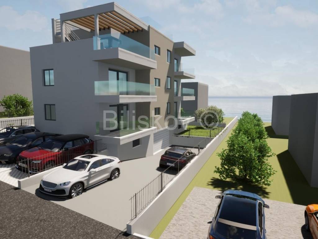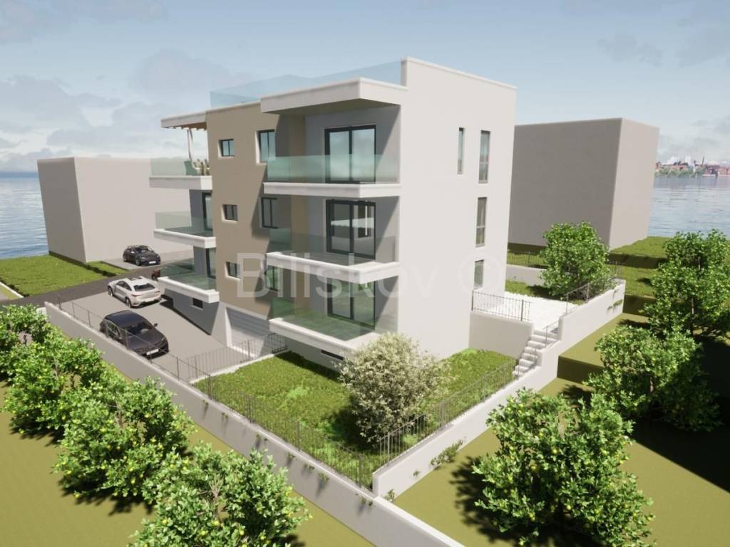 In a highly attractive location in Okrug Gornji on the island of Čiovo, just a few steps from a beautiful pebble beach, a spacious apartment is for sale. The property is located on the second floor of a small residential building currently under construction. The apartment has a total living area of 85.25 m and features an excellent and functional layout. The price includes two garage parking spaces and two outdoor parking spaces, while residents will also have access to an elevator and several guest parking spaces.