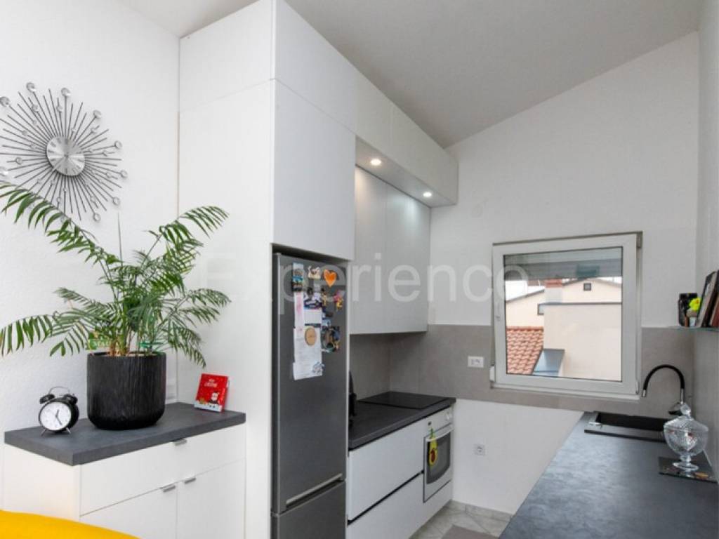 Appartamento in vendita a Funtana 44,50 m + ripostiglio + parcheggio È in vendita un attraente appartamento a Funtana con una superficie abitabile di 44,50 m, comprensivo di ripostiglio al piano interrato di 2,20 m e un posto auto. Lappartamento si trova al secondo piano di un edificio residenziale, in una zona tranquilla, a soli 700 metri dalle spiagge attrezzate e 400 metri dal centro di Funtana, ideale sia per la vita quotidiana che per le vacanze o laffitto turistico. Dalla terrazza si gode di una vista aperta sui terreni agricoli circostanti, che garantisce privacy e tranquillità. Lappartamento viene venduto completamente arredato ed è immediatamente abitabile. È composto da:
