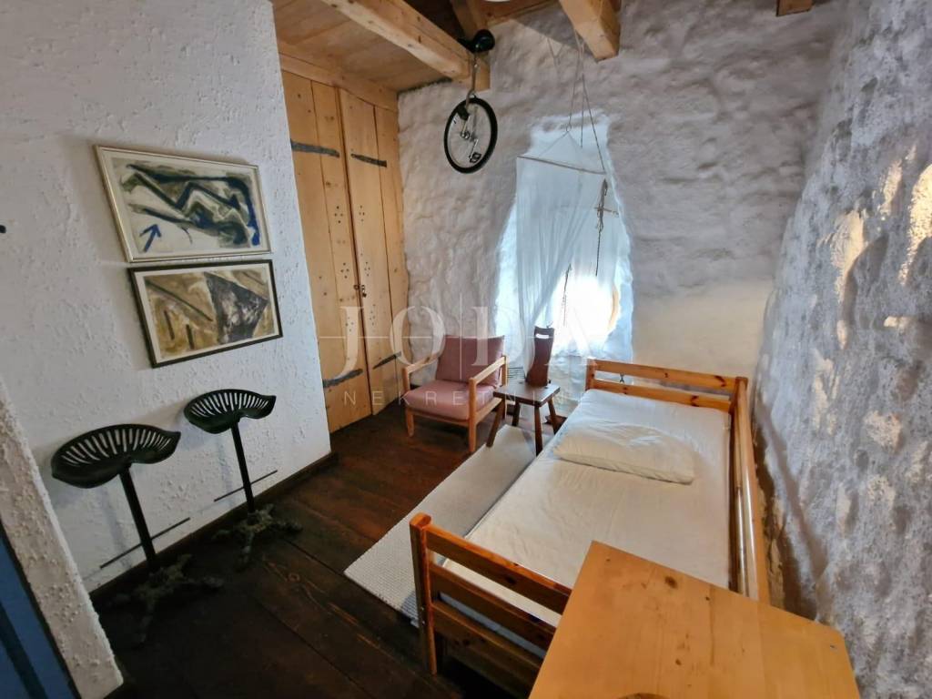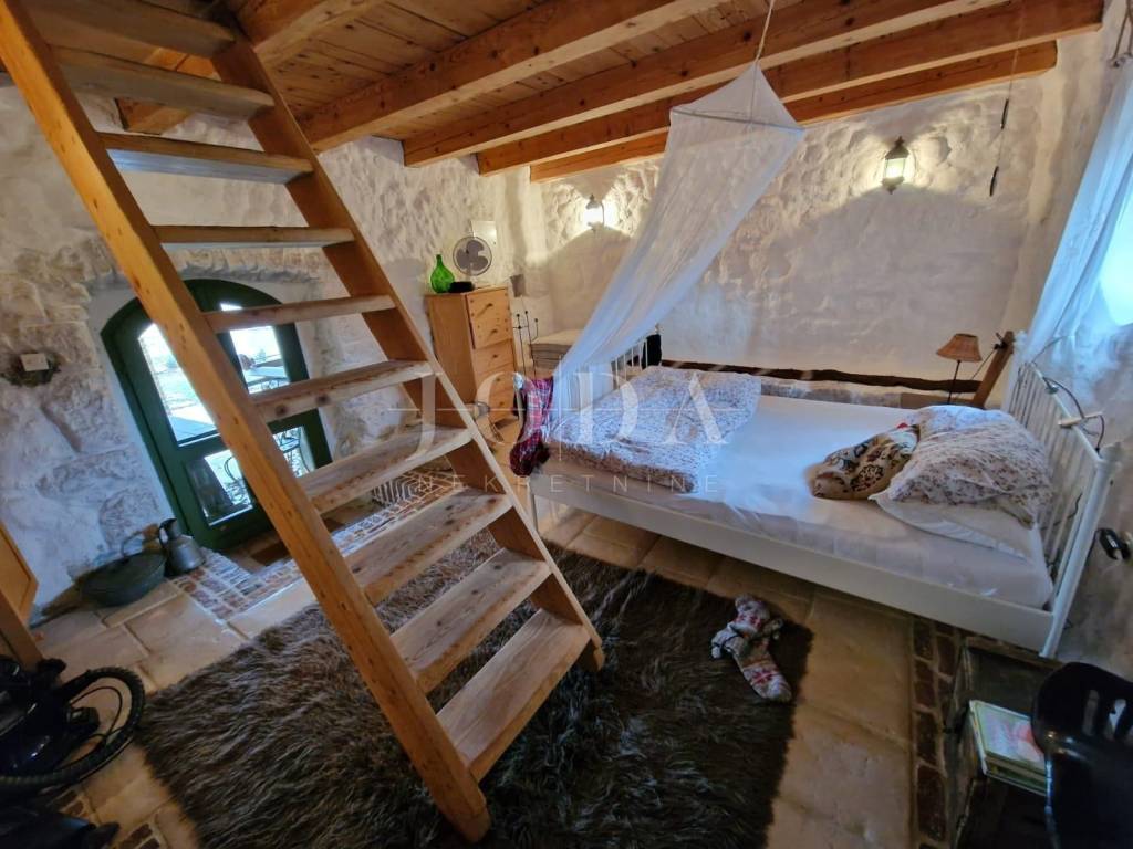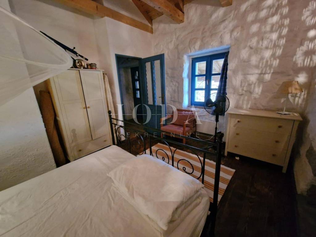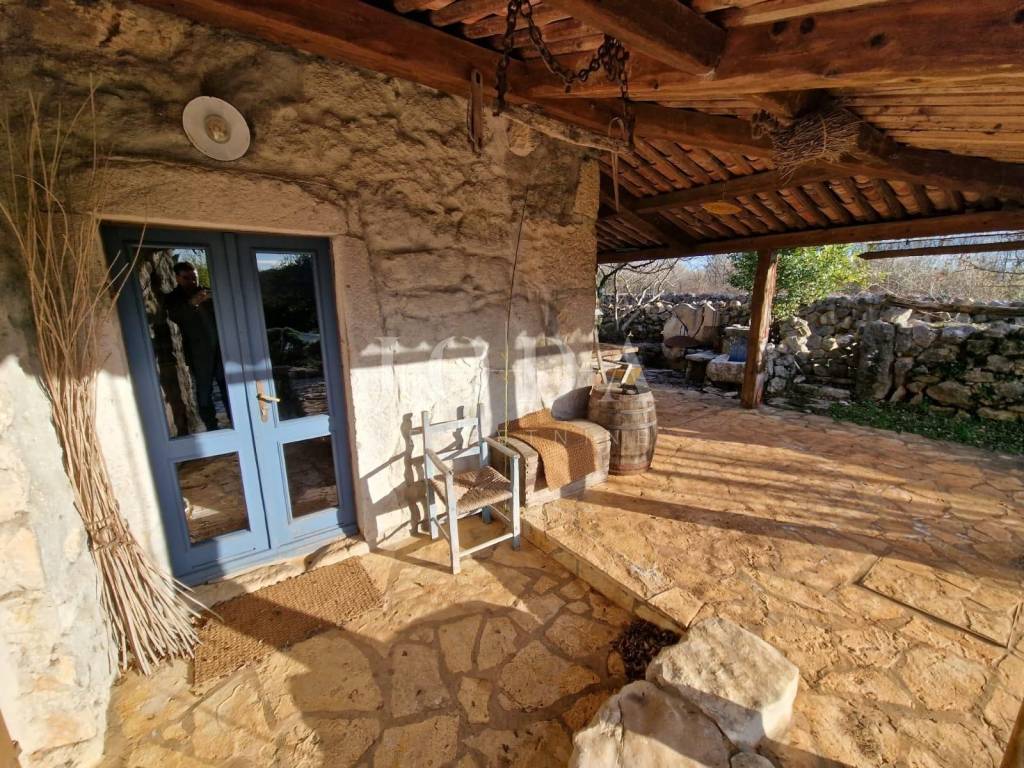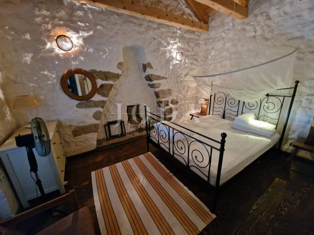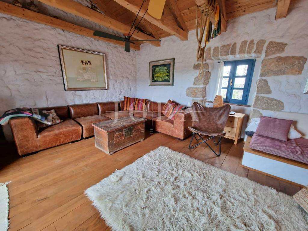This beautiful stone house with a swimming pool in a quiet location near Dobrinj on the island of Krk is new in our portfolio! The authentic stone house was renovated in 2020 and is located next to the green zone in an excellent location near Dobrinj. It is divided into the ground floor and the first floor. On the ground floor is a kitchen with a space for socializing and access to a large covered terrace, one bedroom, and a bathroom. The staircase leads to the first floor, where there is a large living room and two bedrooms with exits to the terrace. The beautiful rustic interior of the house dominates, giving it a special charm. The house is sold partially furnished, by agreement. It has a landscaped garden with a swimming pool. It was used for tourist purposes and is ideal for investment in tourism, but also as your own piece of rustic paradise on the island of Krk. ID CODE: EI-4575 Josip Šikić, mag.oec Agent s licencom Mob: +385 91 890 4694 Tel: +385 51 403 771 E-mail: info@joda-nekretnine.hr www.joda-nekretnine.hr