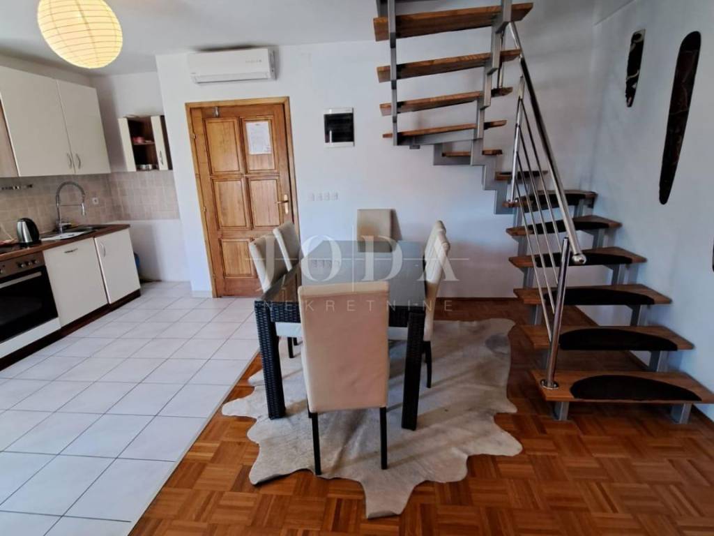 A three-bedroom two-story apartment with a garden in the city of Krk is for sale!  The apartment extends to the first floor and the high attic of a residential building with a total of four residential units. The apartment has a garden of 57m2 and two parking spaces. On the first floor there is a living room, a kitchen and a dining room, as well as a bathroom and a loggia. An internal staircase leads to the second floor in the loft, which consists of three bedrooms and a toilet. The apartment is fully furnished and equipped and is being sold as such. It has PVC joinery and one air conditioner on each floor. Heating is also possible with solid fuels. The property is located in a great location near the center of Krk and all the necessary amenities. Opportunity!  ID CODE: EI-4289  Josip Šikić, mag.oec Agent s licencom Mob: +385 91 890 4694 Tel: +385 51 403 771 E-mail: info@joda-nekretnine.hr www.joda-nekretnine.hr