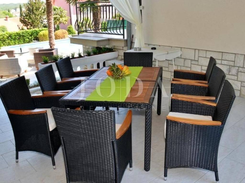 A beautiful detached house for sale with a swimming pool and a large garden in the vicinity of Malinska on the island of Krk! The house has a living area of 150 m2 and a 577 m2 garden. It consists of a basement, ground floor, and first floor, and two residential units. In the basement, there is a terrace and a summer kitchen. There are two identical apartments on the ground floor and the first floor - they consist of a living room, a kitchen and a dining room, two bedrooms, a bathroom, and an additional toilet and their area are approx. 60m2. The apartments have separate entrances. There is a swimming pool and several parking spaces in the garden. The property was renovated in 2018. It is located in an excellent location, approx. 500m from the first beach. It has been successfully rented out for tourist purposes for several years, so it is potentially a great investment. ID CODE: EI-4493 Josip Šikić, mag.oec Agent s licencom Mob: +385 91 890 4694 Tel: +385 51 403 771 E-mail: info@joda-nekretnine.hr www.joda-nekretnine.hr