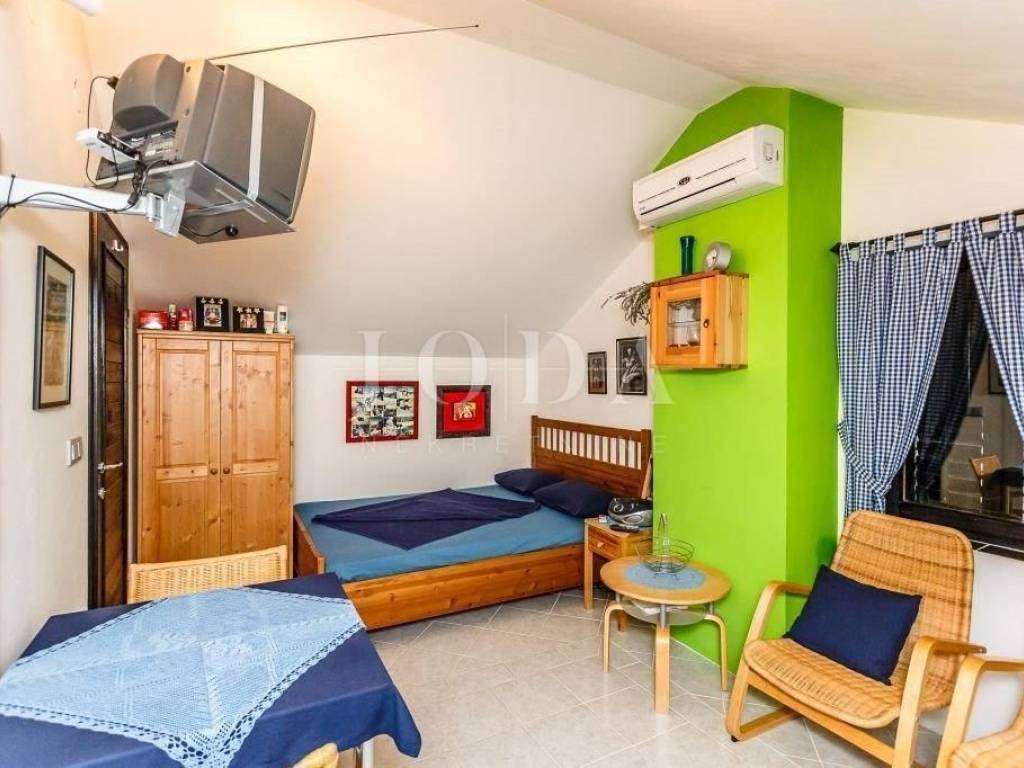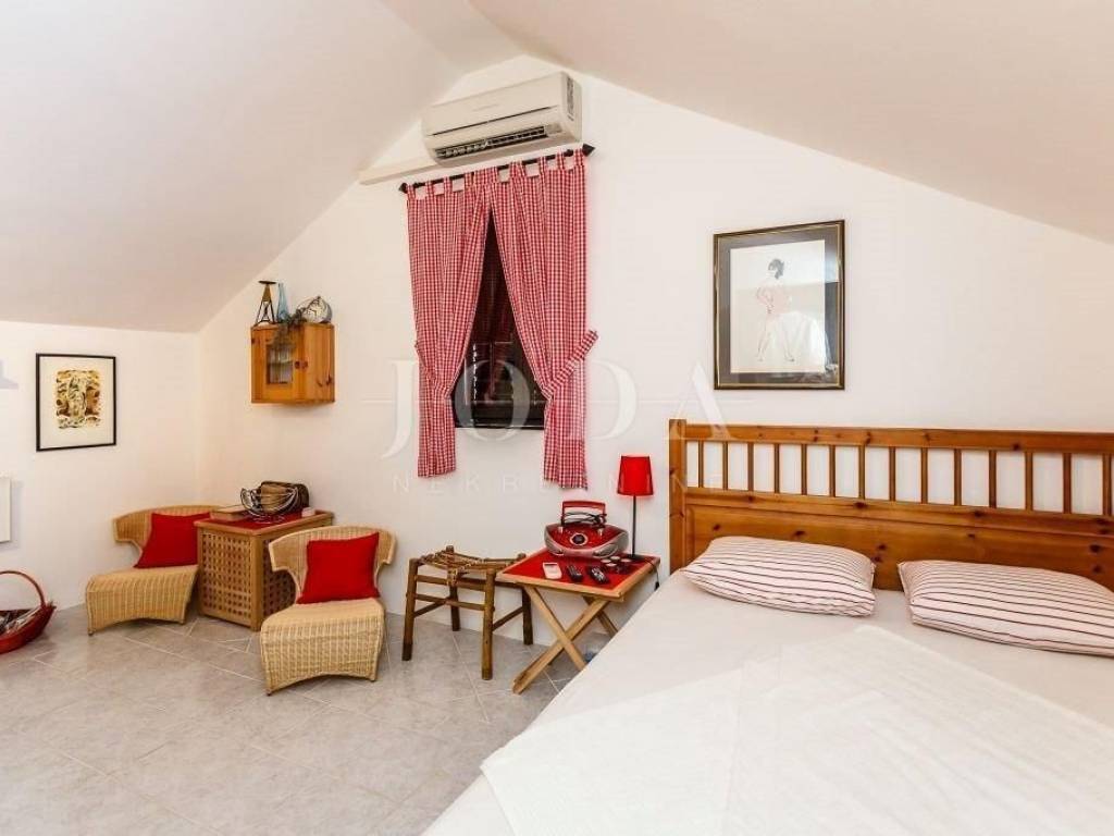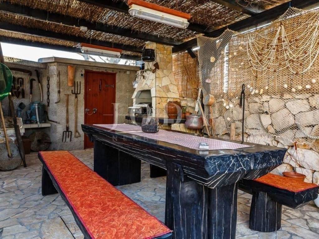 In the vicinity of the small village Dobrinj, on the island of Krk, at only 300 meters from the beautiful sandy beaches, there is this classy decorated old stone house, completely renovated in 2002. The house is built on a plot of 321 m2, and her overall surface is 141.32 m2. On the ground floor there is a living room, which is also the bedroom, kitchen, dining room and bathroom. The attic floor is connected to the ground floor with external staircase. There are two studio apartments, one bathroom and a shared balcony. The garden is beautifully decorated, with many indigenous details, and there are three terraces, one of which is covered and has a barbecue. Descending the stone staircase one can reach the wine cellar. Nearby to the house there is a garage which could be arranged as desired, and in front of the house there have been preserved original rocks from the island and a small natural lake. For all those who love peace and quiet, enjoyment in solitude and natural beauty. At only 300 meters there is the beautiful beach. ID CODE: EI-125 Josip Šikić, mag.oec Agent s licencom Mob: +385 91 890 4694 Tel: +385 51 403 771 E-mail: info@joda-nekretnine.hr www.joda-nekretnine.hr