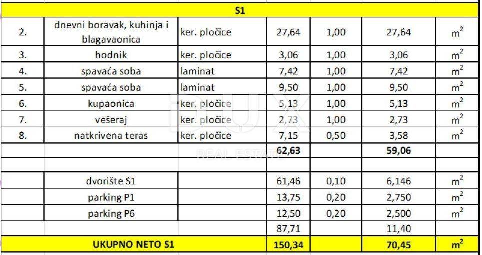ZADAR, VIR - Elegant ground floor apartment with garden! New construction! S1. In a modern new building located in a quiet and attractive area, there is this beautiful ground floor apartment with its own garden and two parking spaces. This well-designed space offers two spacious bedrooms, an elegant bathroom, a spacious living room and a functional kitchen with a dining area. Additional convenience is provided by a laundry room, making the apartment ideal for a comfortable and carefree life. The building consists of only four apartments, and each of them has two parking spaces. The construction is taking place according to the highest and most modern standards, with special attention paid to the quality of materials and energy efficiency. All apartments will be equipped with top-quality PVC joinery with electric shutters and luxurious sanitary equipment. Underfloor heating in the bathroom and three air conditioning units ensure optimal temperature throughout the year. The building is surrounded by newly built apartments and modern semi-detached houses with swimming pools, providing a pleasant atmosphere and a high level of privacy. Each apartment has a separate connection to the public water supply, sewage and electricity, which additionally guarantees complete independence and comfort of living. The island of Vir, known for its natural beauty, clean beaches and crystal clear sea, is the perfect destination for anyone looking for a peaceful but eventful life by the sea. With numerous facilities, a restaurant offer and proximity to Zadar, Vir is one of the most desirable places to live and vacation. Don't miss the opportunity to invest in your dream property - contact us for more information and to arrange a viewing! Dear clients, the agency commission is charged in accordance with the General Terms and Conditions www.dux-nekretnine.hr/opci-uvjeti-poslovanja ID CODE: 37643 Josip Šestan Agent s licencom Mob: +385 91 799 6986 Tel: +385 91 480 8808 E-mail: josip@dux-dalmacija.com www.dux-dalmacija.com