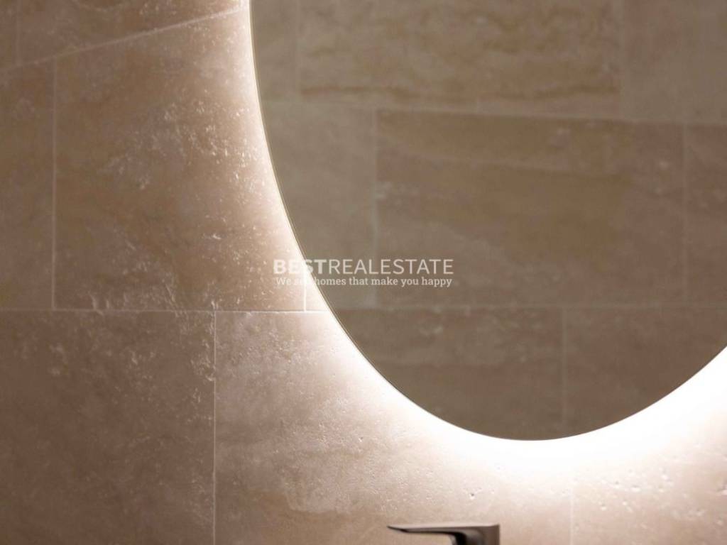 Vila je opremljena najkvalitetnijim brendovima – od kuhinje Modulnova i aparata Franke, Barazza, Bora, Siemens Studioline i Miele, do sanitarija Catalano, armatura Hans Grohe i Keuco, kao i rasvjete i namještaja prestižnih proizvođača poput Varaschin, Flos, Midj, San Giacomo i Flexteam. Klima uređaji Mitsubishi osiguravaju ugodnu temperaturu tijekom cijele godine. Uz sve to, na raspolaganju su i dva parkirna mjesta te podrum od cca 15 m² za dodatno skladištenje.