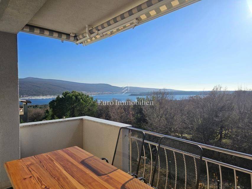 Isola di Krk, comune di Krk, appartamento con due camere da letto e soggiorno con vista sul mare aperto.