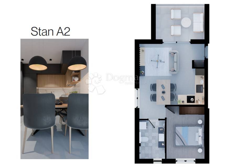NEW BUILDING - APARTMENT IN ROGOZNICA, EXCELLENT LOCATION An apartment for sale in a new building in Rogoznica, located in an extremely attractive and quiet location, only 250 m from the sea and 800 m from the town center. The apartment is located in a residential building with a total of 6 residential units, and the total net area of the apartment is 43.41 m. Layout: Entrance area: 1.55 m Kitchen: 5.01 m Living room with dining room: 15.66 m Bedroom: 10.00 m Bathroom: 4.68 m Loggia: 8.68 m (6.51 m net) About the building: New construction on a plot of 653 m Located on elevated terrain with a beautiful panoramic view View of the islets of Jaz and Lukvenjak, and of Zatoglav and Ražanj Floor plan dimensions of the building: 13.92 mx 15.59 m Orientation of the building orthogonal to the cardinal points The building consists of one underground and three above-ground floors There are two residential units on each above-ground floor Storage spaces for each residential unit are provided in the underground floor Additional amenities: Pedestrian and vehicle access from the west side A total of 9 outdoor parking spaces Ideal holiday property, housing or tourist investment.