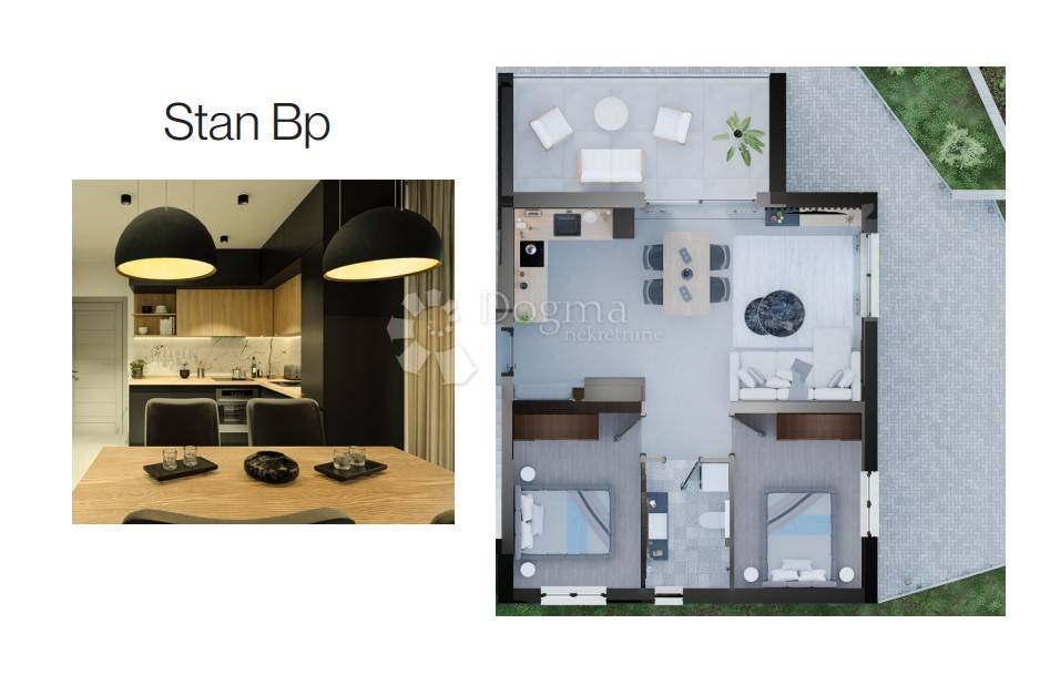 NEW BUILDING - APARTMENT IN ROGOZNICA, EXCELLENT LOCATION An apartment for sale in a new building in Rogoznica, located in an extremely attractive and quiet location, only 250 m from the sea and 800 m from the town center. The apartment is located in a residential building with a total of 6 residential units, and the total net area of the apartment is 43.41 m. Layout: Entrance area: 1.55 m Kitchen: 5.01 m Living room with dining room: 15.66 m Bedroom: 10.00 m Bathroom: 4.68 m Loggia: 8.68 m (6.51 m net) About the building: New construction on a plot of 653 m Located on elevated terrain with a beautiful panoramic view View of the islets of Jaz and Lukvenjak, and of Zatoglav and Ražanj Floor plan dimensions of the building: 13.92 mx 15.59 m Orientation of the building orthogonal to the cardinal points The building consists of one underground and three above-ground floors There are two residential units on each above-ground floor Storage spaces for each residential unit are provided in the underground floor Additional amenities: Pedestrian and vehicle access from the west side A total of 9 outdoor parking spaces Ideal holiday property, housing or tourist investment.