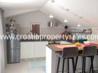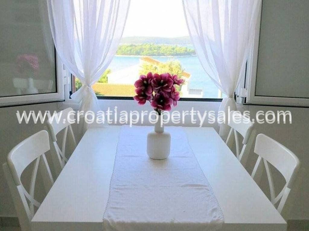 For sale we have a part of the house (first floor and loft space), with a total of 3 apartments.Two categorized apartments are located on the first floor of 105 m2 of living space.Each apartment has 1 bedroom, kitchen, living room, bathroom and balcony overlooking the sea.The loft has a large apartment of 84m2 with two bedrooms, living room, kitchen and dining room, bathroom, hallway and terrace with unique views of the sea and islands.The building also has an outdoor storage space and two parking spaces.The apartments are in excellent condition and are being sold fully furnished.The two apartments are categorized and bring great profit. It is possible to continue renting, the business is well-established with exelent reviews.With the apartments in the package goes a boat that is ideal for trips to nearby islands and Drvenik.Surrounded by pine trees, beautiful beaches and the center of a small beautiful village is only 150 m away.