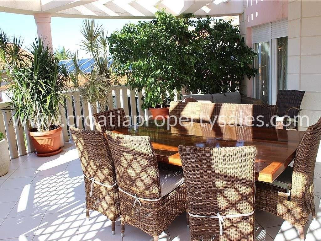 Beautiful villa with indoor swimming pool, located only 100 meters from the sea in a small town on Omis Riviera.It consists of ground floor and 2 upper floors.On the ground floor there is a garage that has direct access to the house, laundry room, toilet, pantry, indoor swimming pool measuring 12x4m, wet and dry sauna, and mini gym from where you directly access the outdoor covered patio with seating area.Outside there is a barbecue grill, and a beautifully landscaped courtyard planted with palm trees and Dalmatian herbs.On the first and second floor there is a duplex apartment of 230 m2 which consists of a hallway with staircase, 3 bathrooms, 4 bedrooms, kitchen, dining room and living room, closed balcony and a terrace.On the first floor there is also an apartment of 90 m2 which consists of hallway, kitchen, living room, two bedrooms, bathroom and two terraces.On the second floor there is an apartment of 75 m2 which also has two bedrooms, bathroom, kitchen, living room and covered terrace.The house is well-decorated and equipped, and intimate and discreet position gives it extra charm.Distance from the sea: 100 mDistance from the airport: 45 kmFor more information contact our office in Split.