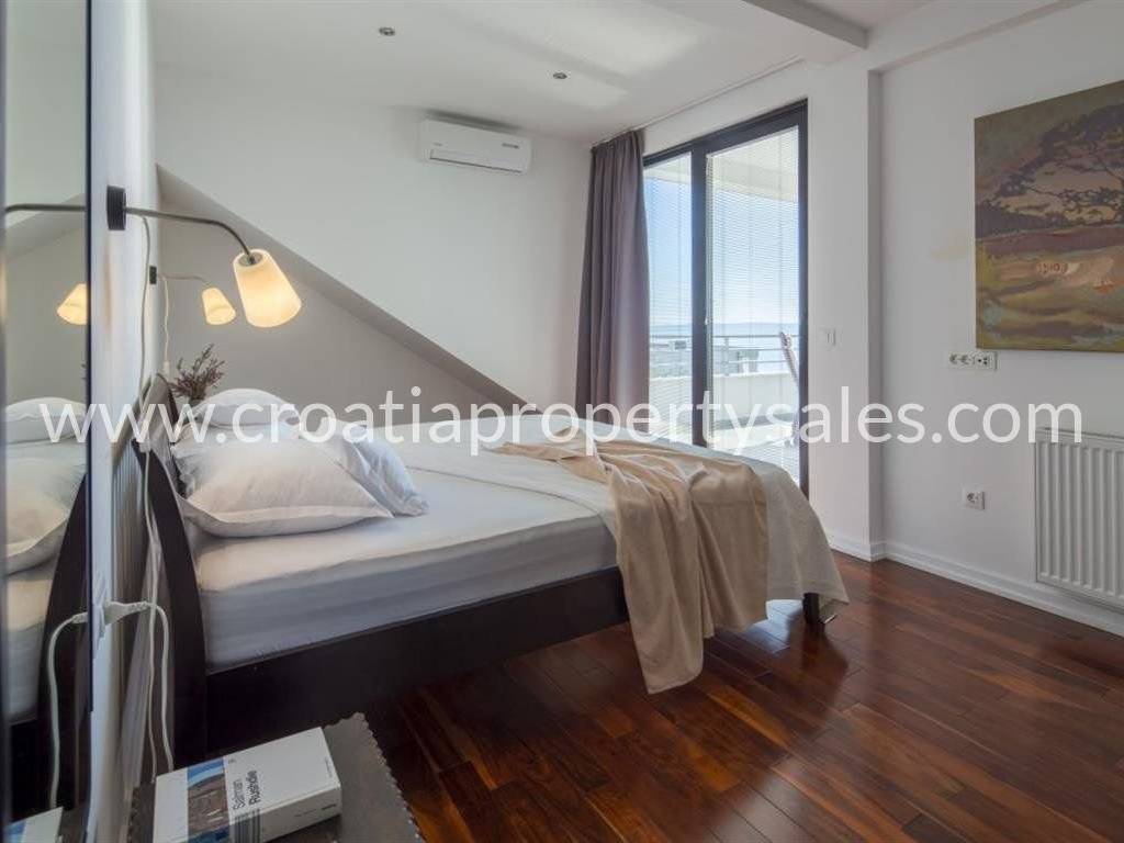 We are delighted to present this beautifully decorated, modern villa near Makarska.The villa is located in a quiet location that offers intimate atmosphere with panoramic sea views.It consists of a basement with a wine cellar and a workout area.On the first floor of the house there is a kitchen with dining room, and a spacious living room. The entire living area is full of windows which helps to illuminate the space and also provide a beautiful view.A beautifully designed internal staircase lead to the top floor of the house, and there are 3 bedrooms with bathrooms, as well as another room that has access to the balcony.Contemporary interior design with beautiful colors, large terrace with pool, landscaped gardens, all of this will allow every guest of this villa to have a wonderful stay.