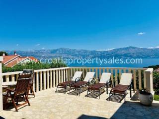 A large house partially coated in stone, with beautiful open sea view.It is located on a plot of 300 m2, while the living area is 204m2.It consists of three total floors; ground floor, first floor and attic.On the ground floor there is a one bedroom apartment and a summer kitchen.On the first floor, which is reached by an external stone staircase, there is a central, large apartment consisting of three bedrooms, bathroom, kitchen, dining room and living room with exit to the terrace.The terrace is 27 m2 in size and offers panoramic sea views.In the attic there are two one-bedroom apartments which are also reached by an external stone staircase. One is fully furnished, while the other is unfinished. Each of the apartments has access to its own balcony overlooking the sea.The yard is paved, has two barbecue grills and a beautiful garden with Mediterranean plants and fruits.The house is fully equipped and furnished. All apartments are air conditioned, there is a chimney, for the possibility if you want to put a heating stove.The house is being sold furnished.There is enough space for parking several cars.