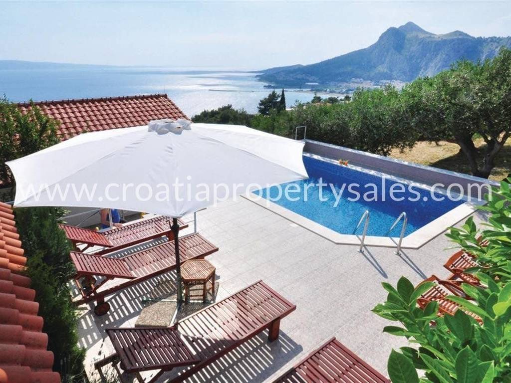 Beautiful apartment house in an exceptional location near the center of Omis.The house has two separate parts, east and west.In the eastern part of the house on the ground floor there is a storage room, on the mezzanine there is an unfinished study room and on the first floor there are two beautifully decorated two-bedroom apartments.The second, western part of the house on the ground floor has a traditional tavern decorated in Dalmatian style, ideal for socializing and enjoying.On the first floor there is an apartment with 3 bedrooms, 2 bathrooms, guest toilet, kitchen and living room.On the second floor there is a two-storey residential unit with 3 bedrooms, bathroom, toilet, large kitchen with dining area and living room.Behind the house there is a swimming pool, sun deck and outdoor space for socializing with a beautiful view of the sea, hills and the town of Omis.The house is for sale fully furnished and with a well-established tourist rental business.The house is ideal for anyone who wants to live near the city, yet be protected from the traffic and city noise.