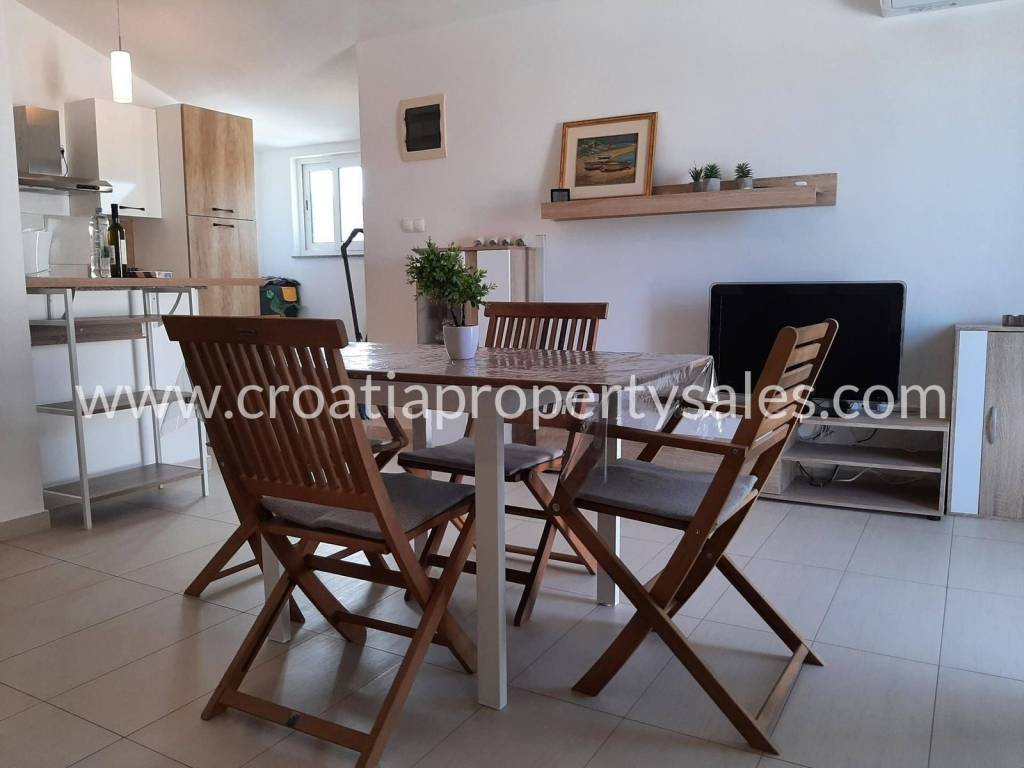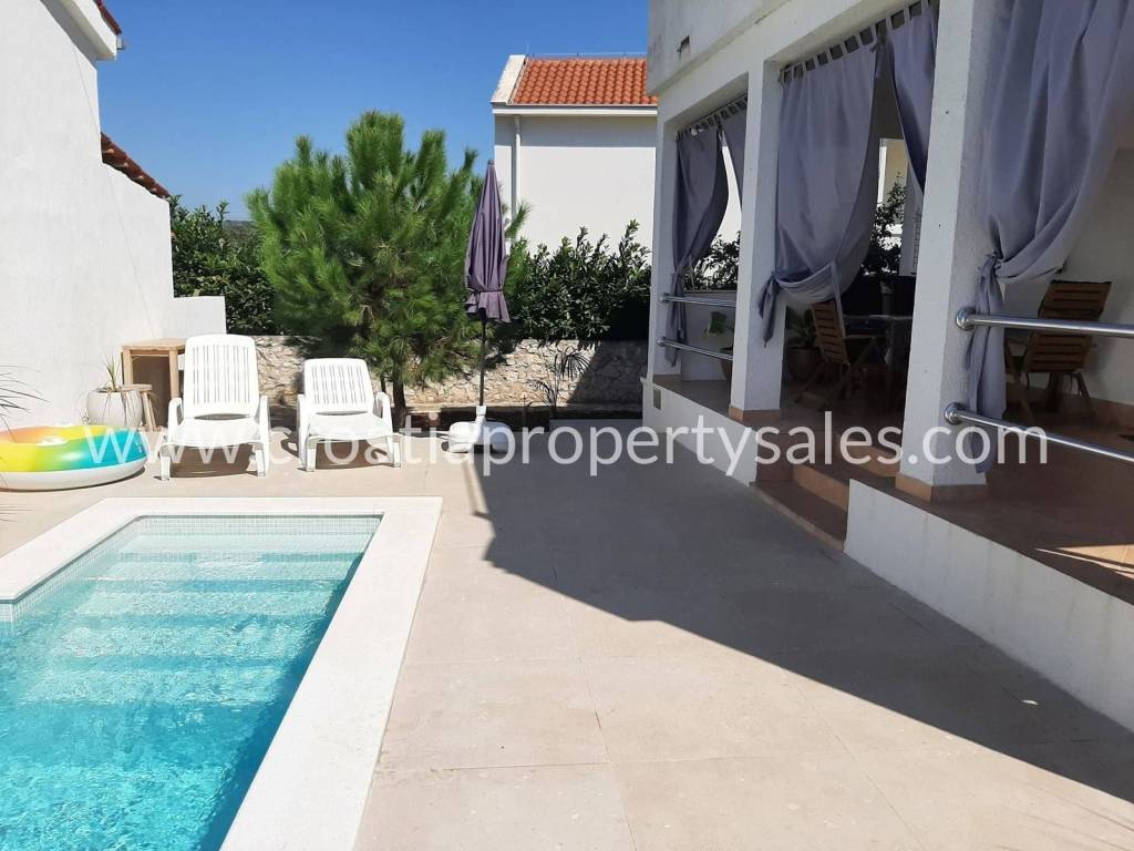 Detached house in a quiet bay not far from Rogoznica.The house is located on a plot of 391 m2.It consists of two floors. On each floor there is a two-bedroom apartment.The yard is well maintained and offers the possibility of socializing with barbecue.The house is ideal for a family holiday, but it also has tourist potential.