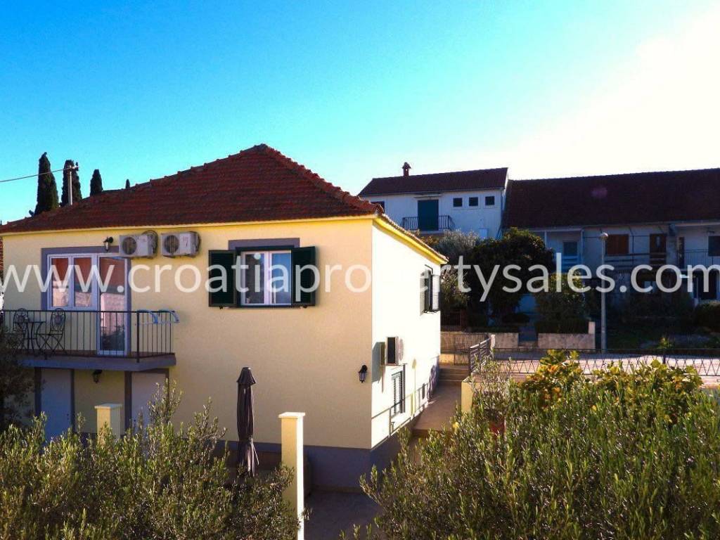 Detached house in an excellent, quiet location near the sea and the beach.It is located on a plot of 408 m2, and consists of two floors.On the ground floor there is an apartment of 33 m2 and consists of a kitchen, bedroom and living room, while the bathroom is separate.External stairs lead to the floor where there is an apartment of 62 m2.It consists of a hallway, bathroom, two bedrooms, kitchen with dining room and separate living room.From the kitchen there is an exit to a balcony with a beautiful view of the sea.At the very entrance to the ground-floor garden there is a paved and decorated courtyard of 30 m2, with a fixed fireplace, which is connected to a well-maintained garden.Both floors have been renovated. The house has three parking spaces.It is located in a beautiful and quiet location, ideal for family life. The house is decorated with greenery, citrus fruits and flowers and has the possibility of building a swimming pool.