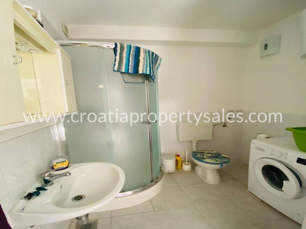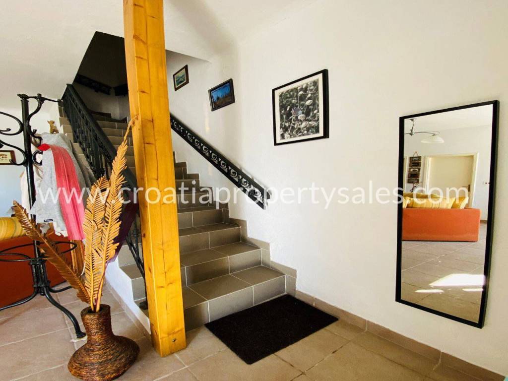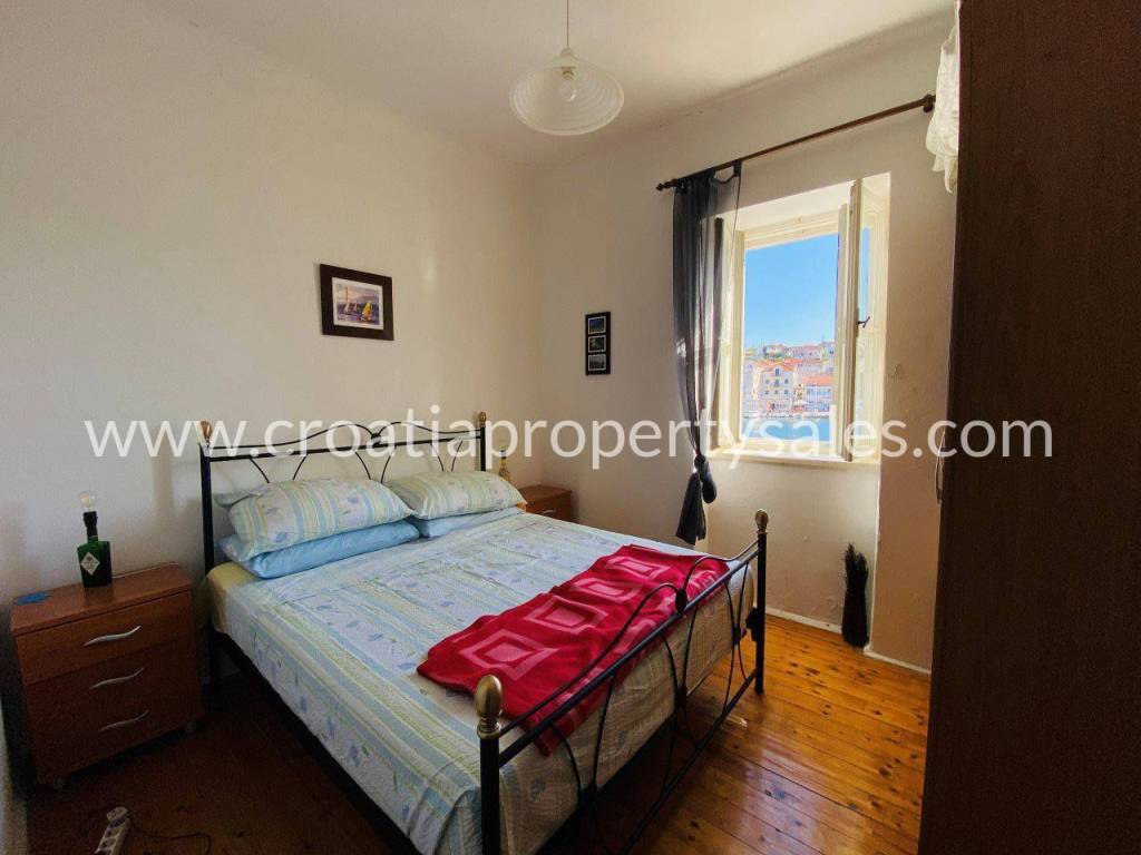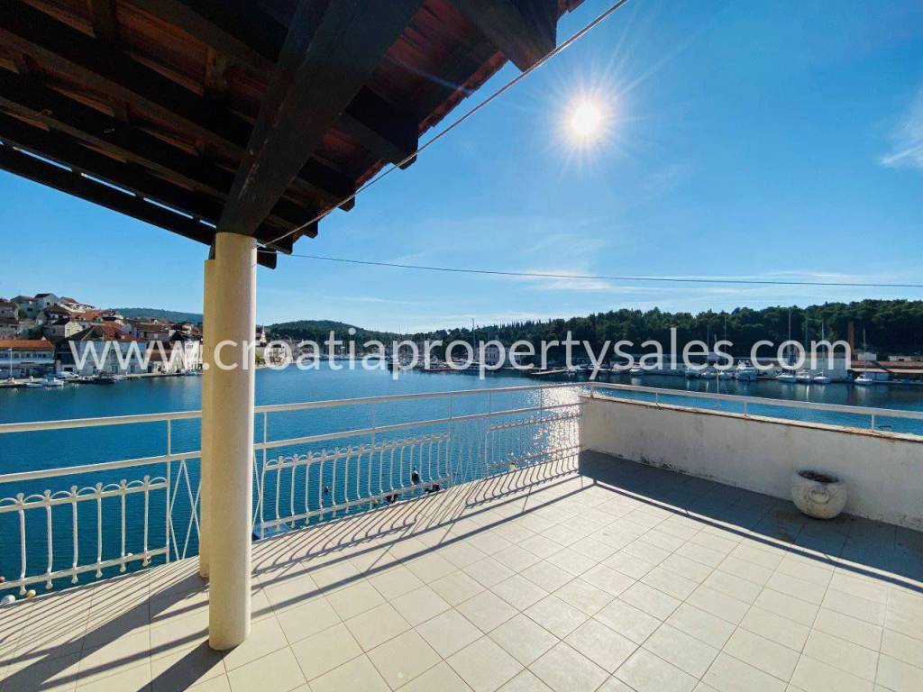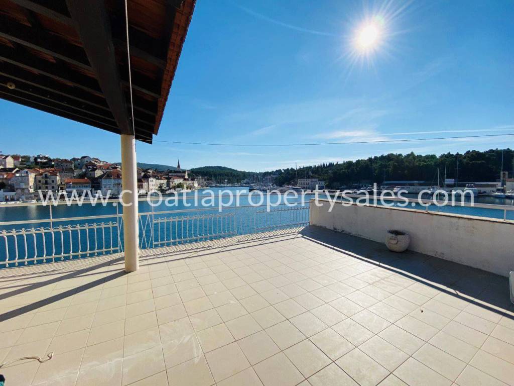 Semi-detached stone house in the first row to the sea.It consists of two floors and has a total of 116 m2.Upon entering the property, we immediately come into a large living room.There are three storage rooms and two bathrooms on the same floor.Internal stairs lead to the first floor where there are three bedrooms, a dining room and a kitchen. Two bedrooms offer a view of the waterfront and the sea.From the kitchen, the external stairs lead to a terrace of approx. 35 m2, from which there is a wonderful view of the sea, the promenade and the town.The house is air-conditioned, has a driveway, and all the infrastructure. Parking is available on the road nearby.