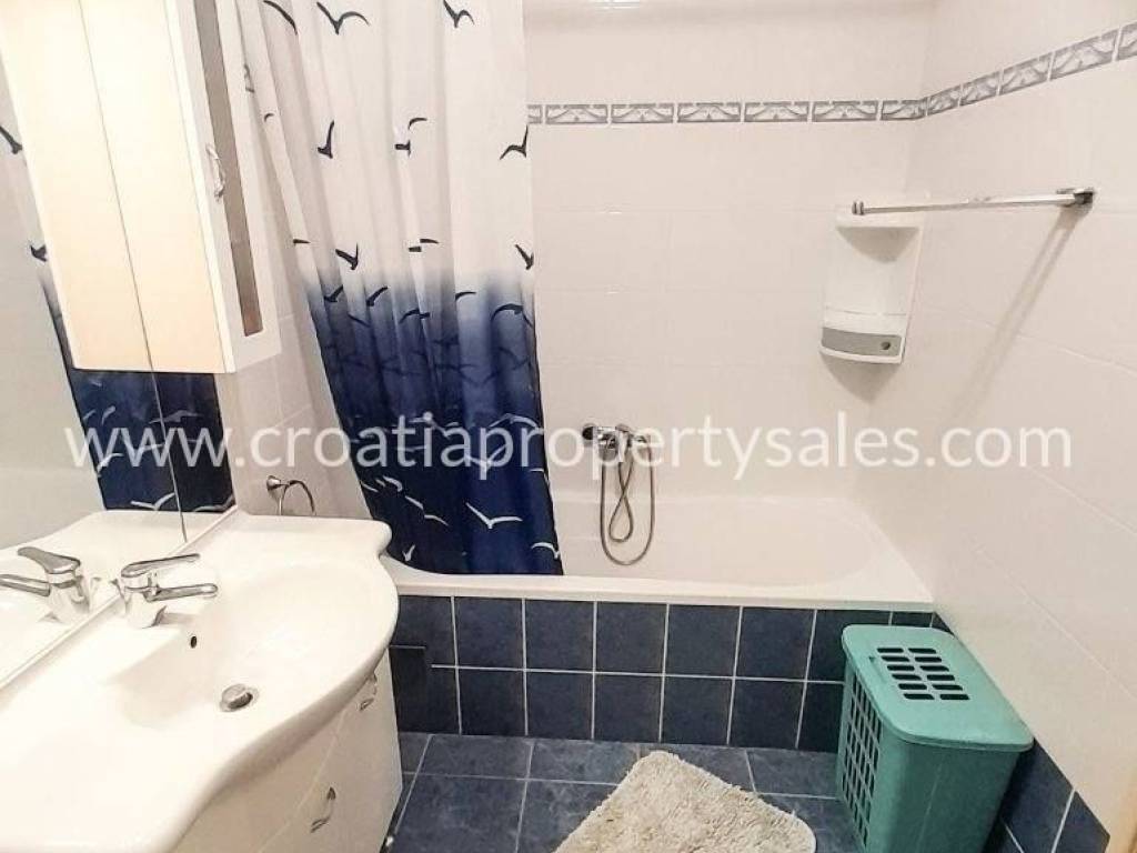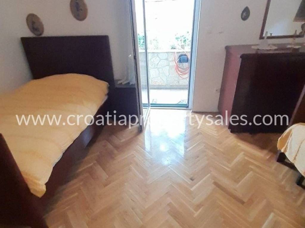 Unique house located on a peaceful island near Trogir, in the first row to the sea.This property is perfect for those seeking a tranquil retreat and an escape from the hustle and bustle of city life, surrounded by unspoiled nature and the beauty of the sea.The house spans three floors and consists of two apartments. The first two floors form a duplex apartment with two spacious bedrooms, ideal for a family.The top floor features an apartment in a shell stage, which the new owner can customize to their own preferences and needs.Each floor has a separate entrance, allowing the apartments to function as independent living units, offering flexibility for future owners – whether as a private oasis or as a rental investment.The island is perfect for nature lovers and those seeking peace and privacy, while still being close to all the amenities of Trogir.If you're looking for a property that combines tranquility and comfort, this is the right choice for you.