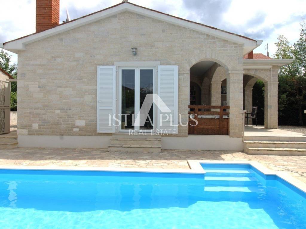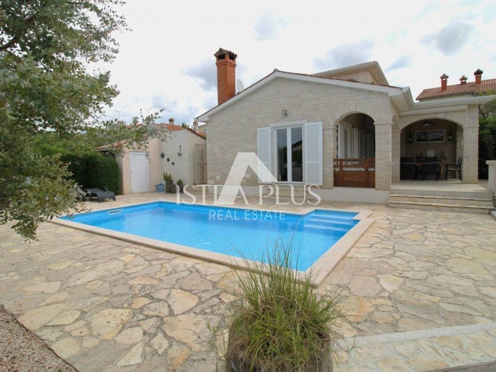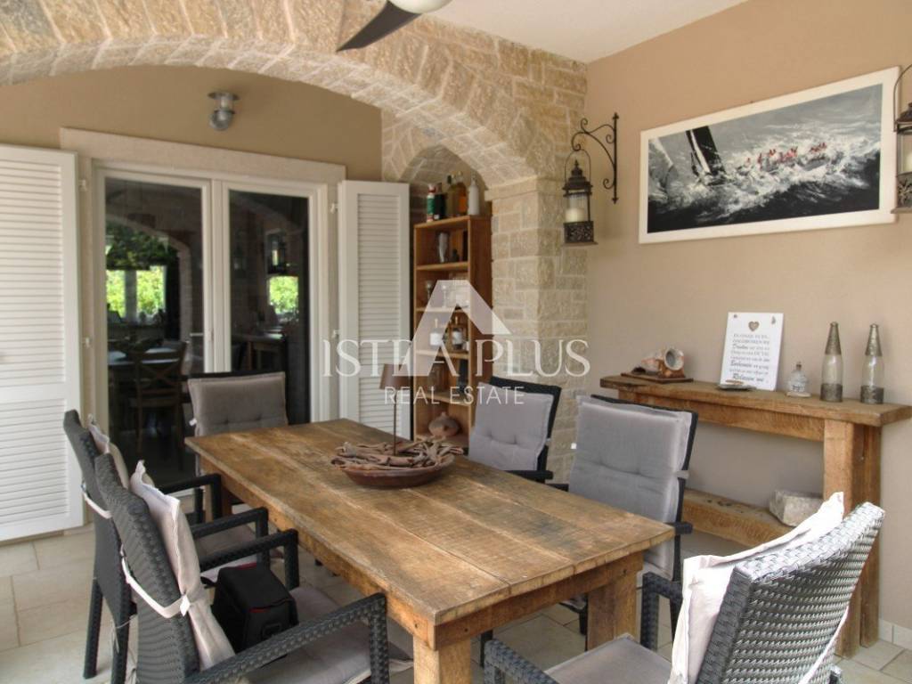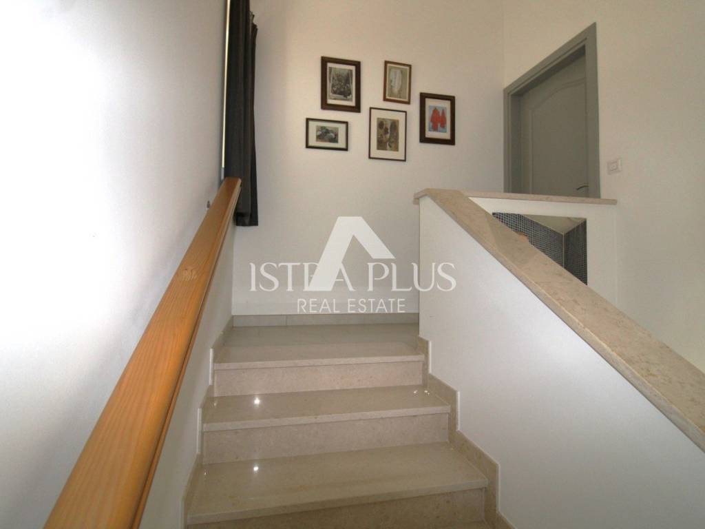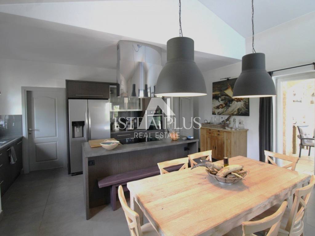 K84 Istria, zona di Parenzo, a 7 km dalla città e dal mare, è in vendita una casa indipendente con piscina di 23 m2. La casa ha 125m2 netti lordi 154,75m2, su terreno 589m2 Questa bella e spaziosa casa è composta da un ingresso, wc, due camere da letto e un bagno al piano terra. Cucina con dispensa e lavanderia, sala da pranzo e soggiorno con diverse uscite sulla terrazza coperta dove si trova anche una zona grill con camino e un cortile splendidamente decorato e curato con solarium e piscina. Al primo piano si trova una camera da letto con bagno privato e terrazzo con vista mare. Riscaldamento e raffrescamento tramite aria condizionata in tutte le stanze, stufa nel soggiorno. Nel cortile si trova anche una casetta da giardino con funzione di garage/deposito, e un oggetto dove si trovano le attrezzature della piscina e una legnaia. viene venduto arredato e corredato. 4 parcheggi Proprietà bellissima e di altissima qualità in un'ottima posizione in un ambiente tranquillo!