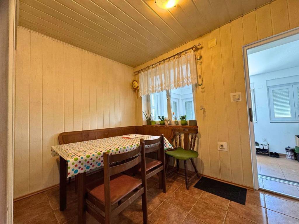 La casa è distribuita su piano terra e primo piano. Al piano terra si trova un ingresso che conduce alla cucina con sala da pranzo e bagno, quindi si accede al soggiorno, a una stanza, a un deposito e alla scala che porta al piano superiore. Al primo piano ci sono tre camere da letto e una loggia.