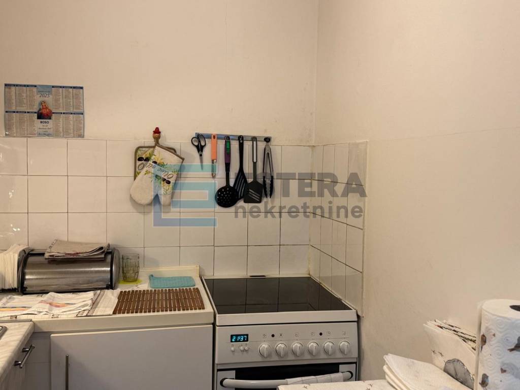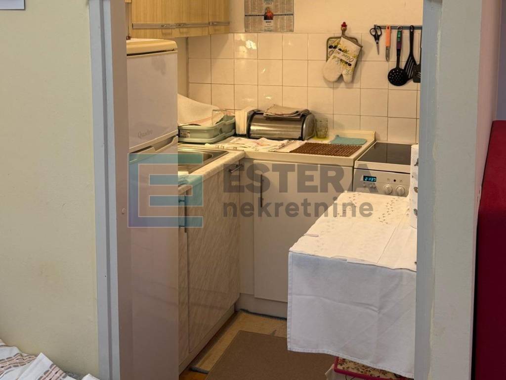 Raspored stana: ulazni prostor, kuhinja odvojena zidom, jedna soba, kupaonica s kadom