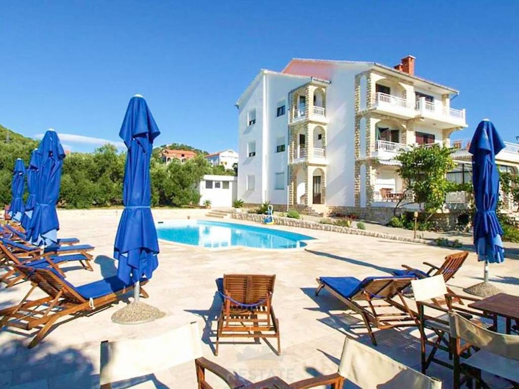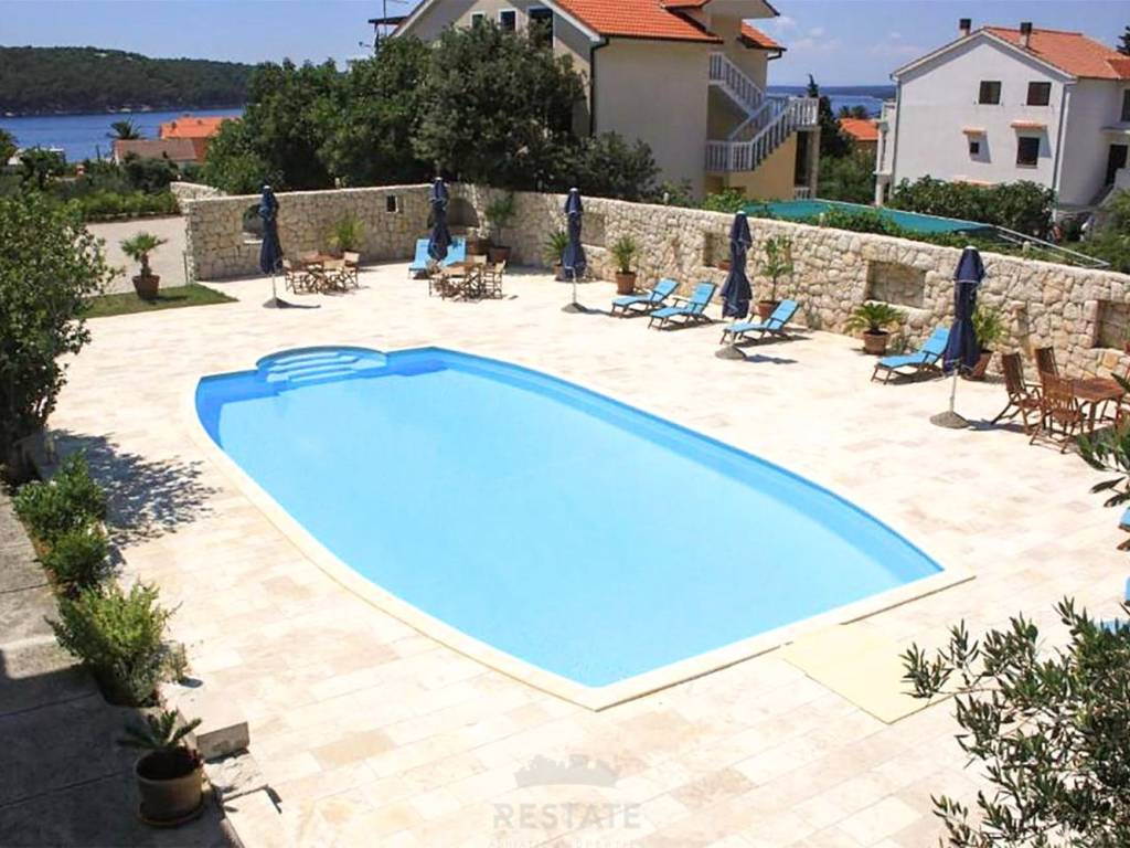 Na otoku Rabu, mjesto Barbat, prodajemo apartmansku kuću sa bazenom i 5 apartmana, sa pogledom na more i udaljenosti od mora cca. 150m.