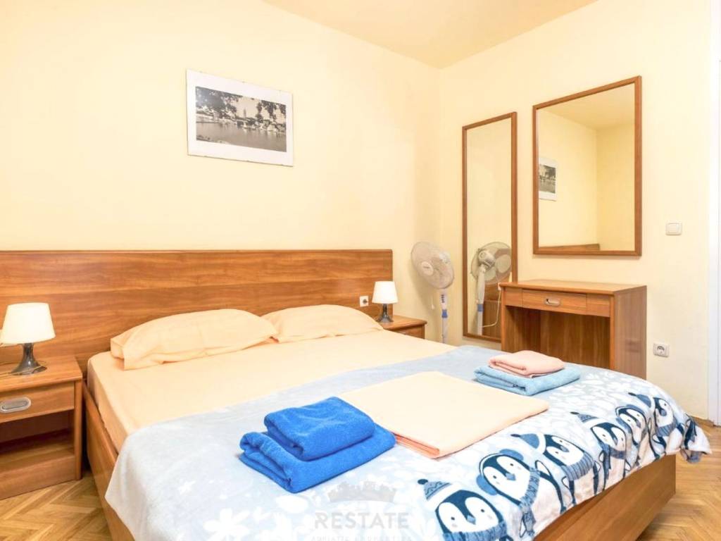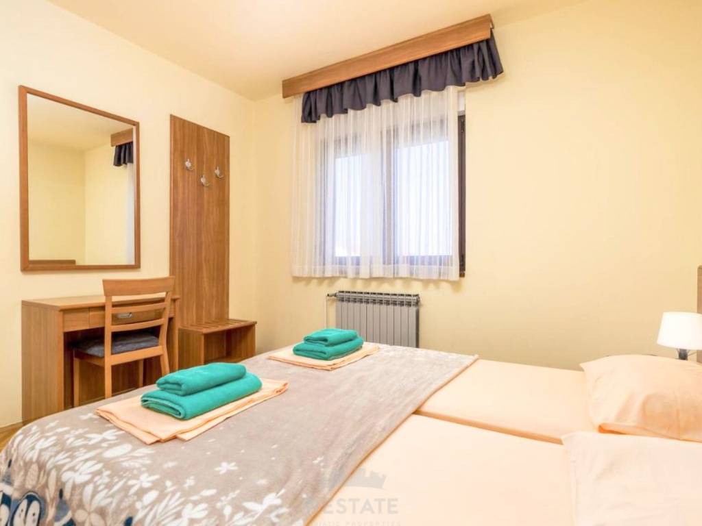 U suterenu se nalazi studio koji trenutno služi kao ostava. U prizemlju se nalazi komforan apartman sa dvije spavaće sobe, kupaonicom, dnevnim boravkom, kuhinjom i blagovaonicom. Straga se nalaze još dvije dodatne spavaće sobe sa kupaonicom, sa odvojenim ulazom. Na 1. katu nalaze se dva apartmana sa balkonom i pogledom na more. Na 2. katu je veliki apartman za 10-12 osoba, sa tri balkona i pogledom na more. Potkrovlje je visoko, trenutno neuređeno, koje se može preurediti u garsonijeru.