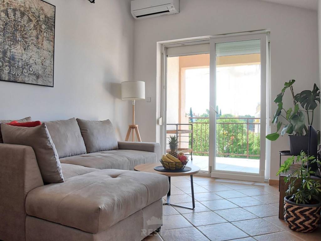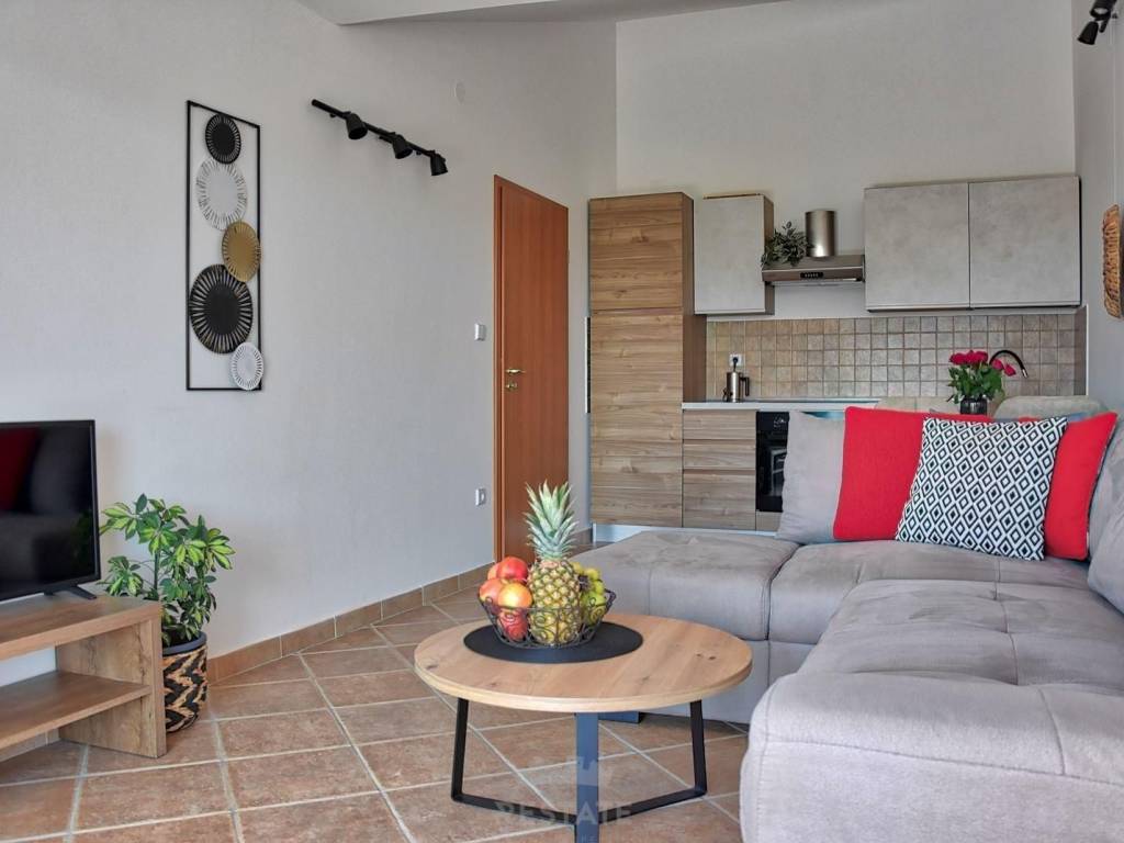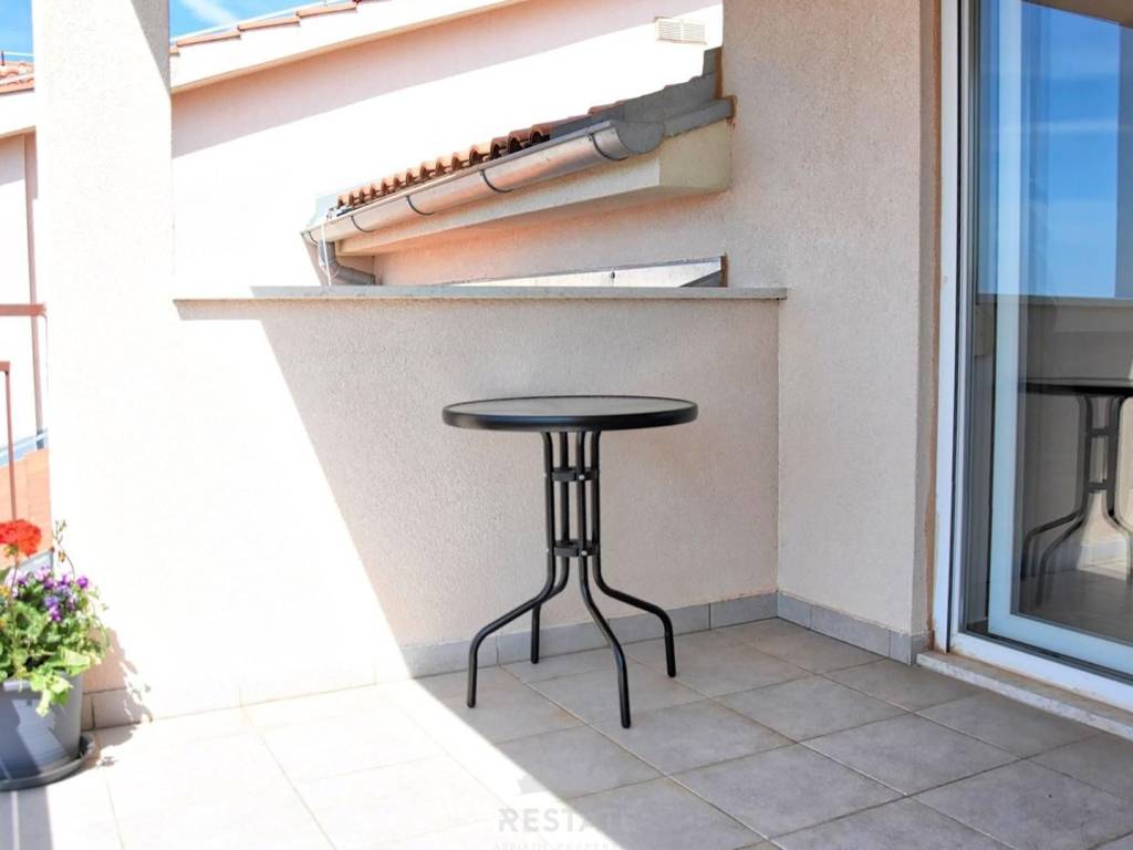 Prodaje se stan sa pogledom na more udaljen samo 1 km od prve plaže i 2,5 km od starogradske jezgre Poreča. Nalazi se na četvrtom katu zgrade te je orijentiran na sunčanu jugozapadnu stranu. Ukupne je površine 42 m2, a sastoji se od dnevnog boravka, kuhinje i blagovaonice, hodnika, kupaonice sa tuš kabinom, spavaće sobe i terase koja pruža prekrasan pogled na more. Može se koristiti kao stan za stanovanje, ali isto tako može biti dobra investicija za sezonsko iznajmljivanje. Stanu pripada spremište u suterenu zgrade od 4 m2.