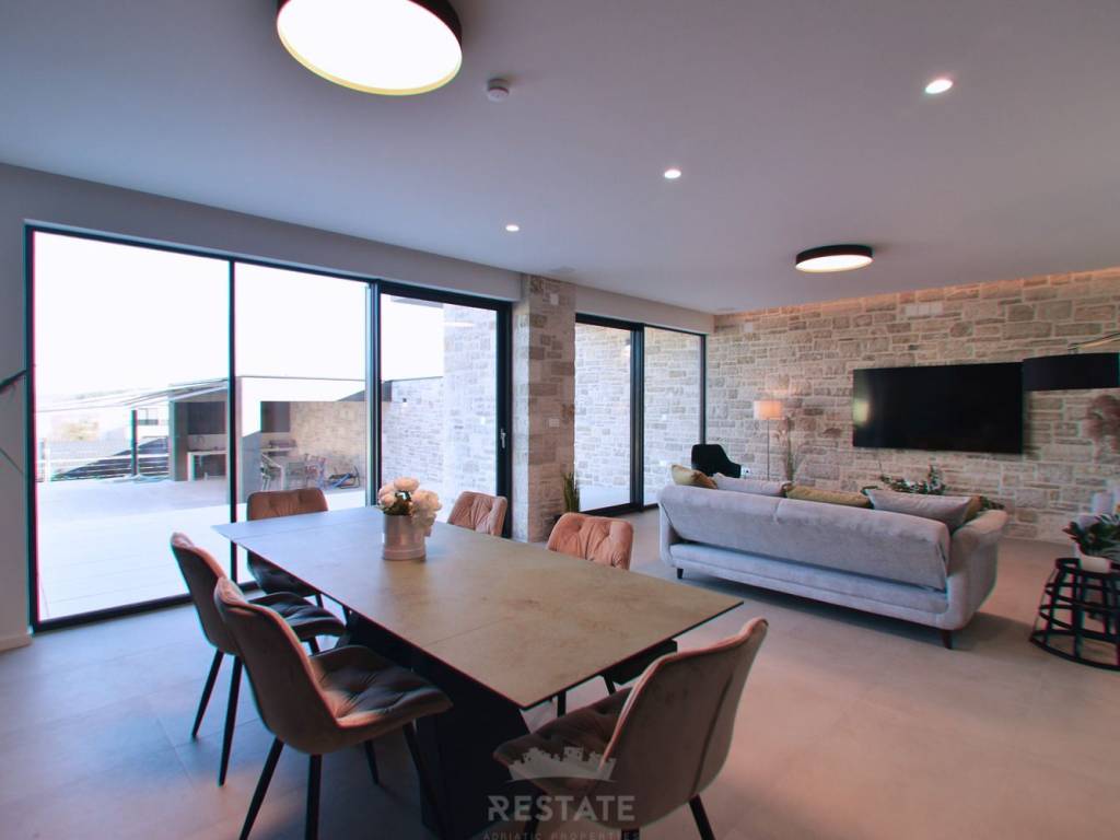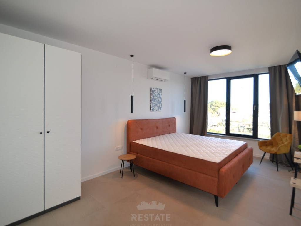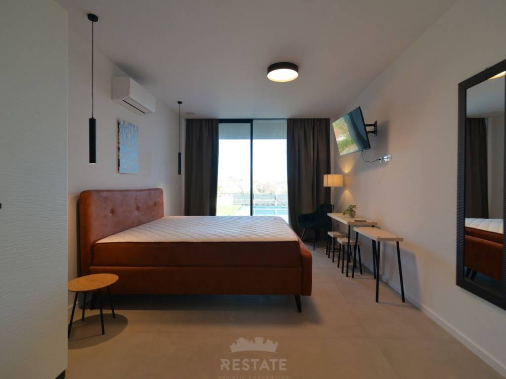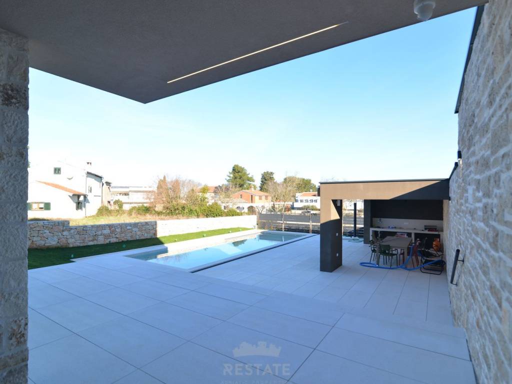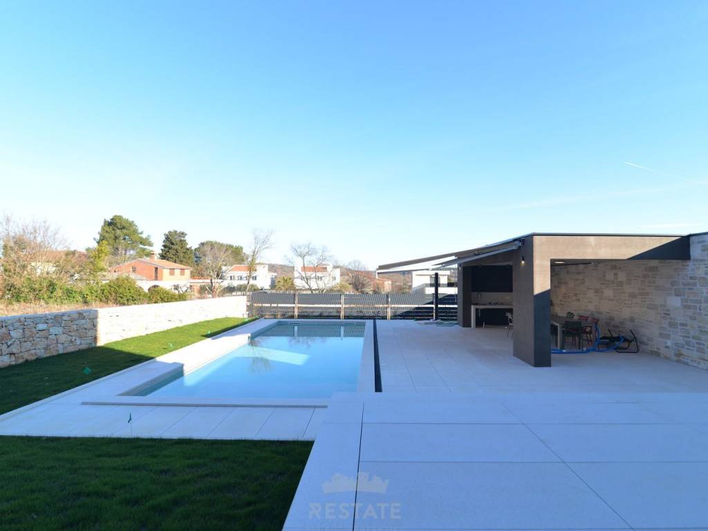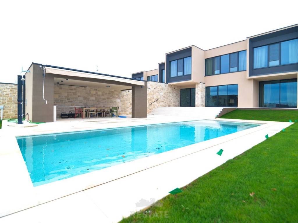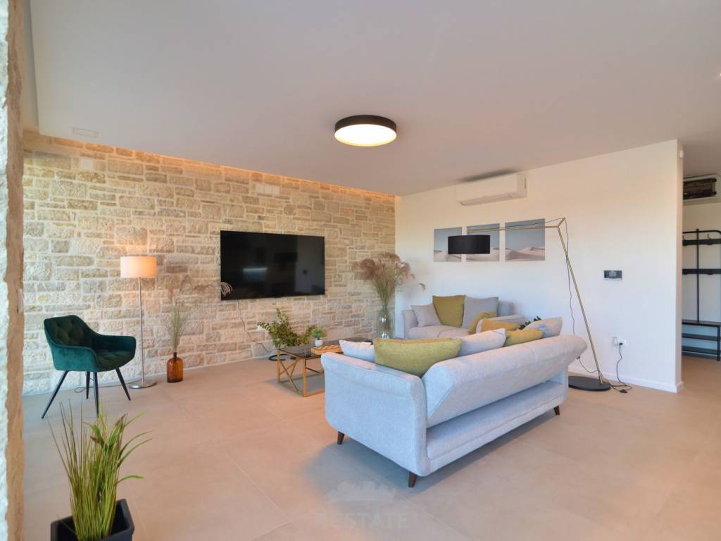 Iznajmljujemo moderan i potpuno namješten stan u dvojnoj kući, u okolici Rovinja na 1 godinu, s ukupnom neto površinom 220 m2 + 25 m2 natkrivene terase odn. ljetne kuhinje = 245 m2 buto, okućnica ima 500 m2. Ova iznimno kvalitetno izgrađena nekretnina nudi mnoge luksuzne prednosti, uključujući blizinu mora, elegantni dizajn i mirnu lokaciju.