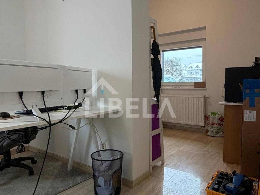 Poslovniprostor se sastoji oddvije prostorije i toaleta tlocrtne površine 48 m2 kojem pripadaju 2 vanjska parkirna mjesta te vrt površine 48 m2 što daje obračunsku površinu od cca 58 m2.