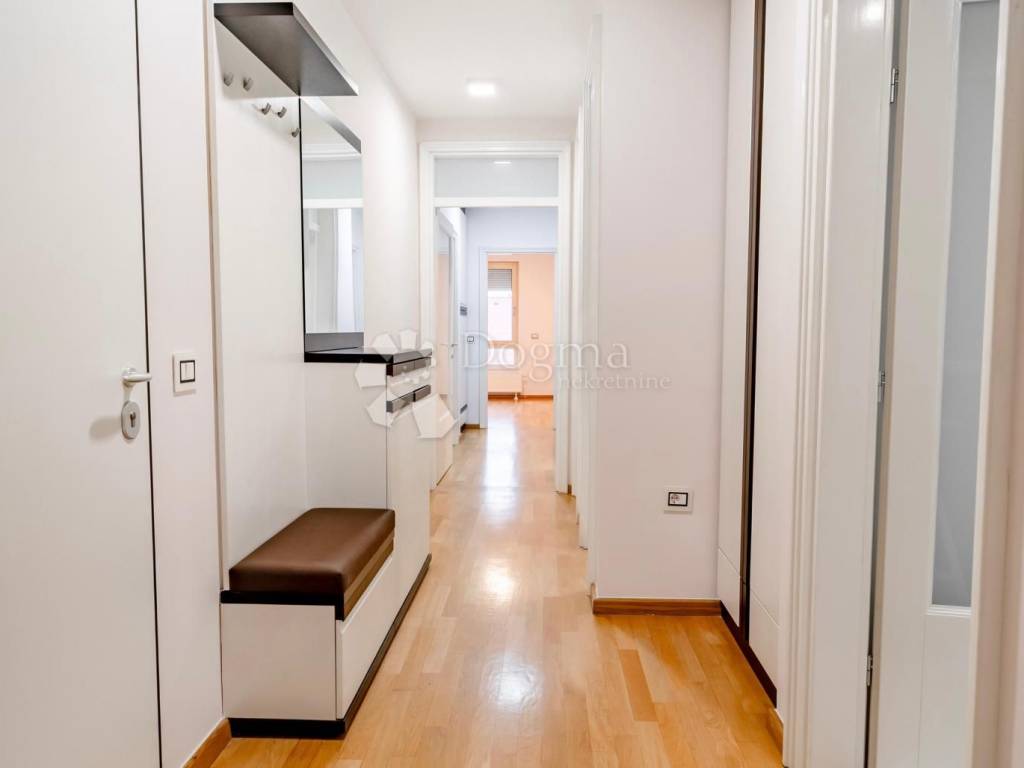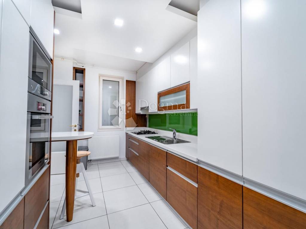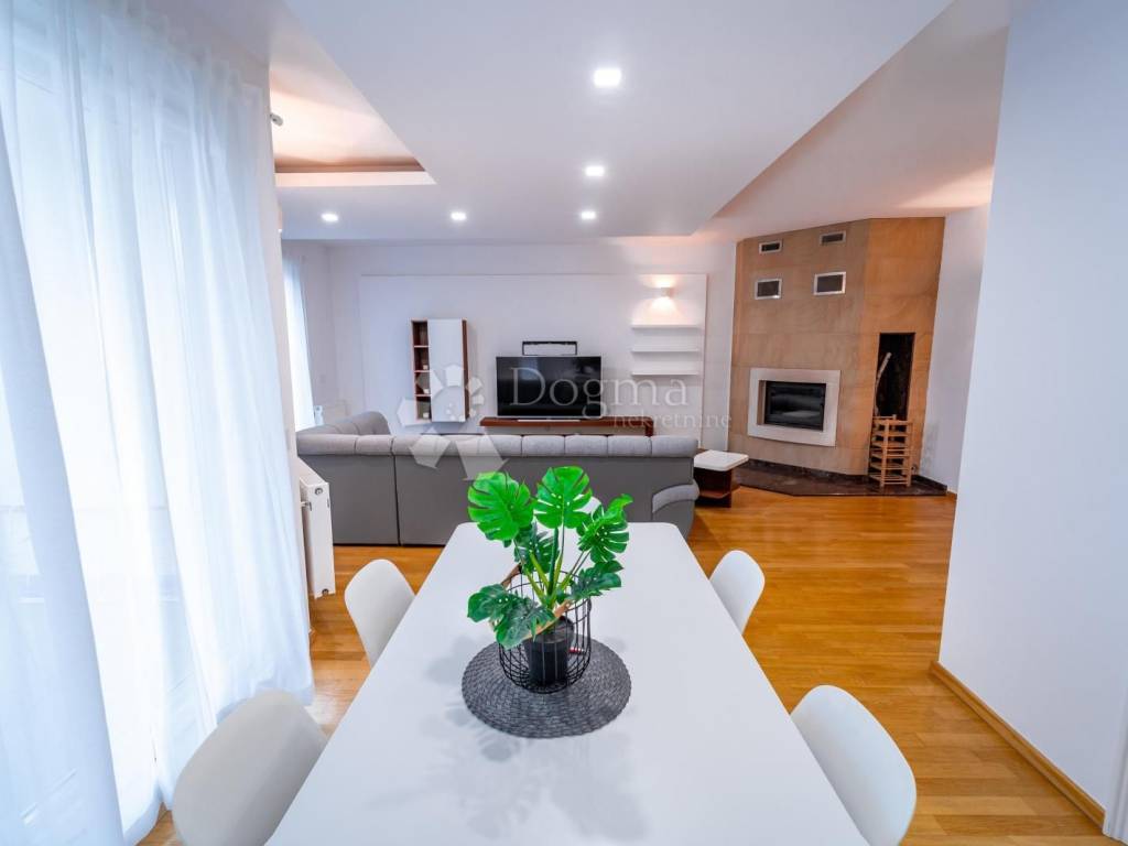 In the very center of Varaždin, an exclusive and luxuriously furnished four-room apartment in a new residential building is available for rent. The apartment has a total area of 136.75 m, is located on the 2nd floor of a building with an elevator, and is intended for long-term rental with a minimum lease period of one year.