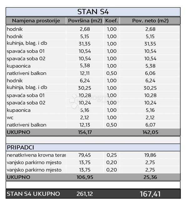 The total gross area of the apartment is 261.12 m, while the net sales area is 167.41 m.