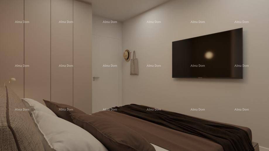 Medulin – Mukalba, appartamento 59,50 m², nuova costruzione, primo fronte mareIn una posizione unica a Medulin, nel complesso Mukalba, si vende un appartamento al piano terra di una nuova costruzione situata nel primo ordine di edifici verso il mare. Davanti all"edificio si trova una zona verde in cui non è consentita la costruzione, garantendo una vista aperta permanente.L"edificio è composto da sole tre unità abitative, il che garantisce privacy e tranquillità.Distribuzione dell"appartamento (40,89 m² netti):una camera da letto,bagno,open space soggiorno con cucina,ripostiglio.Caratteristiche:terrazza di 20 m²,giardino di 140 m²,posto auto esterno privato.Superficie netta totale: 59,50 m².Dotazioni e qualità della costruzione:infissi in PVC di alta qualità con vetro triplo 4S Saint-Gobain,riscaldamento a pavimento ad acqua,persiane elettriche,porte interne verniciate,porta d"ingresso blindata per ogni appartamento,porte dell"edificio in alluminio di alta qualità,ottima isolamento termico (facciata e tetto piano).Nel prezzo è incluso il progetto di interior design con brochure di arredamento e rendering.L"edificio è già in fase avanzata di costruzione, con infissi installati. Il completamento dei lavori è previsto per la primavera del 2026.Contatto per ulteriori informazioni:Azra Valjevac+385 91 611 5706+385 98 420 885azra@almadominvest.com