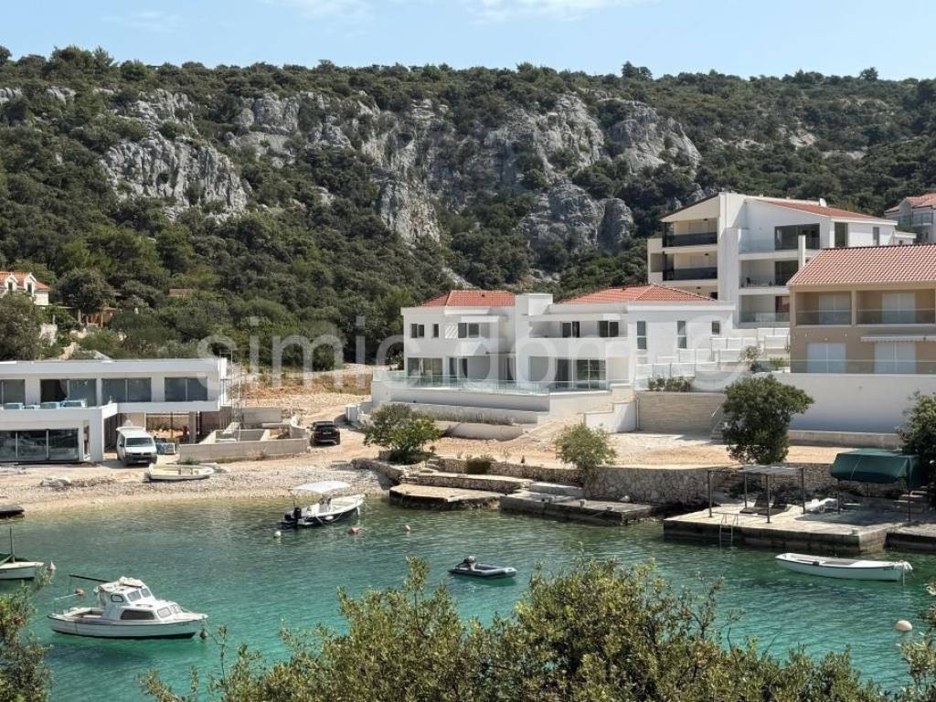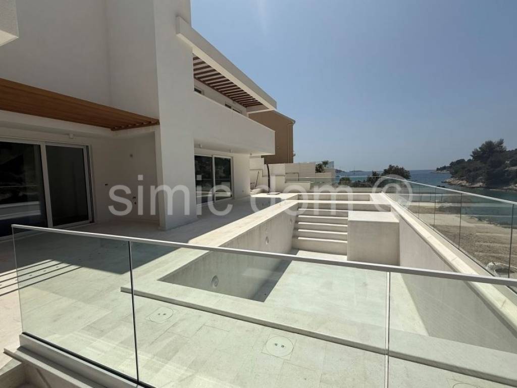 We are mediating in the sale of a beautiful, newly built villa in a location right by the sea and the beautiful beaches of this region. This is a property built on a plot of 630m2, and the area of the house itself is 375m2. It extends over the basement, ground floor and first floor. The ground floor has a kitchen, a living room, a toilet, a laundry room and a wardrobe, as well as a bathroom, a storage room and a sauna. Internal stairs lead to the first floor, where there are 4 bedrooms (each with its own bathroom) and a beautiful balcony. Of course, the entire house offers a beautiful view of the sea and the surrounding area, thus giving the impression of being immersed in nature and the bay. An additional impression of spaciousness is achieved by the paved exterior, which also offers a large swimming pool and plenty of space to relax. The basement area, in turn, has 4 parking spaces, a machine room and an additional water tank. Special care was taken when selecting the highest quality materials for construction and equipment, which, combined with the superb location and peace of this bay, makes this beautiful villa an excellent choice for a proven investment. Ownership is in order.
